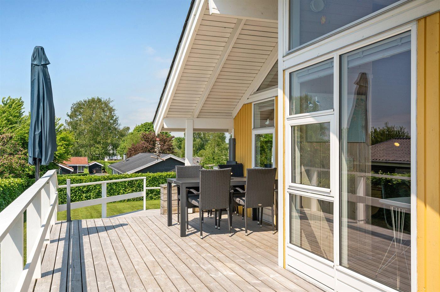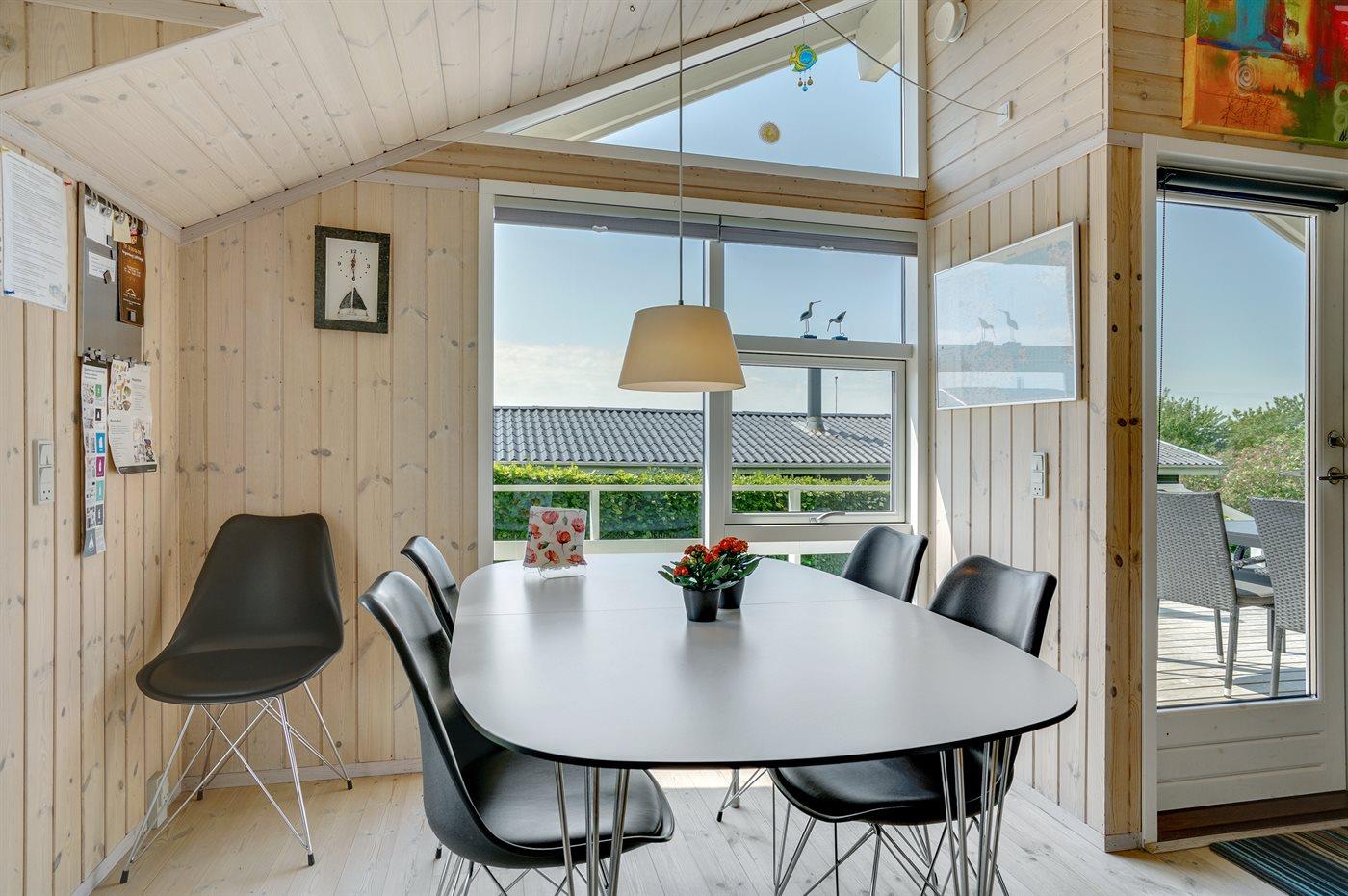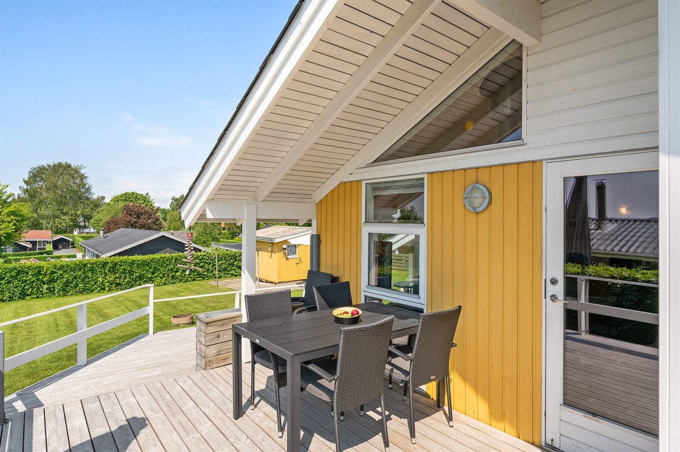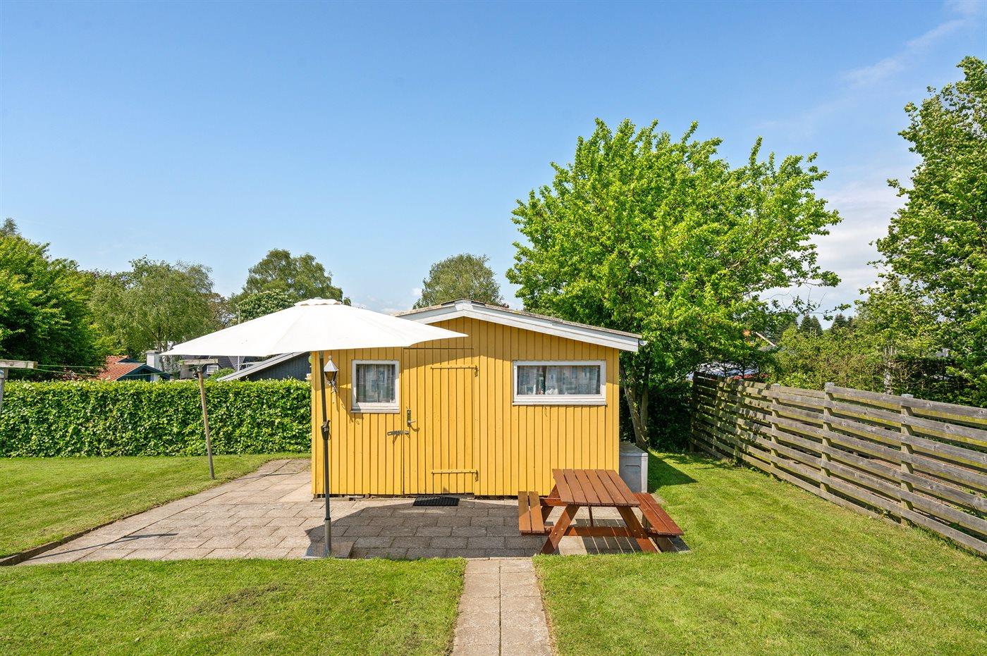 Ferieboligen er beliggende på en 600 m² stor havegrund. Der er 150 m til havet. Nærmeste forretning er beliggende i en afstand af 500 m. Til ferieboligen hører 38 m² terrasseareal. Desuden er der 8 m² overdækket terrasse. Sandkasse. Der ligger en legeplads i en afstand af 300 m. Grill til rådighed. Parkering ved ferieboligen.