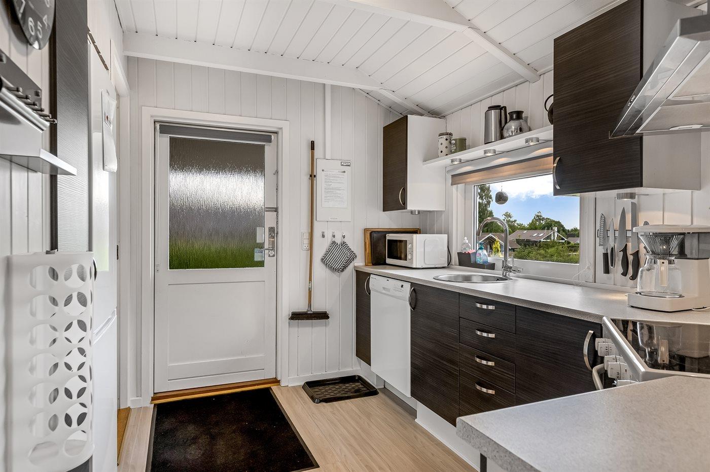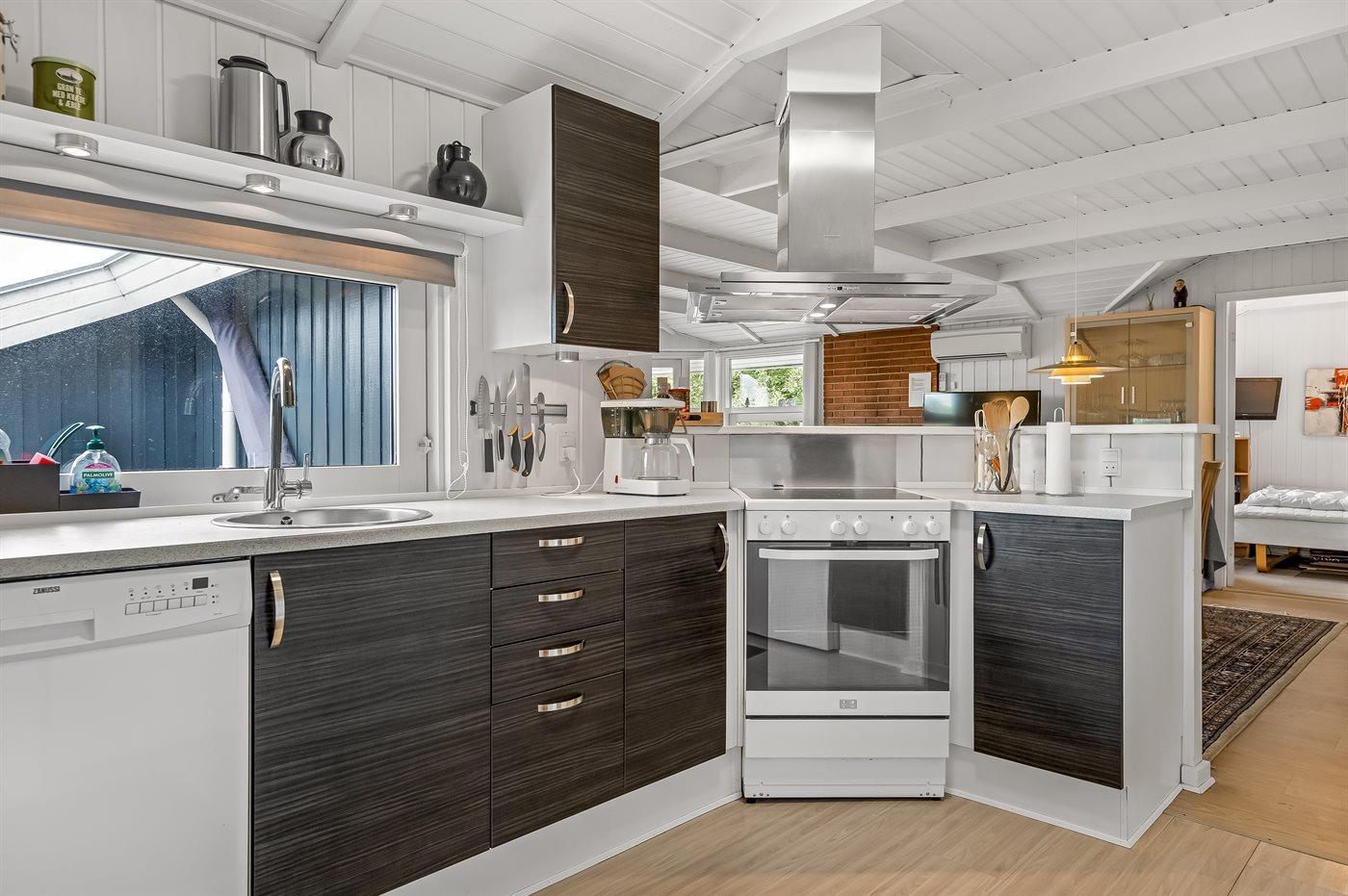 Køkkenet er udstyret med 1 køleskab. Der er 4 keramiske kogeplader, varmluftovn, mikrobølgeovn samt opvaskemaskine.