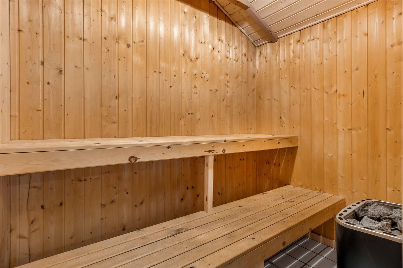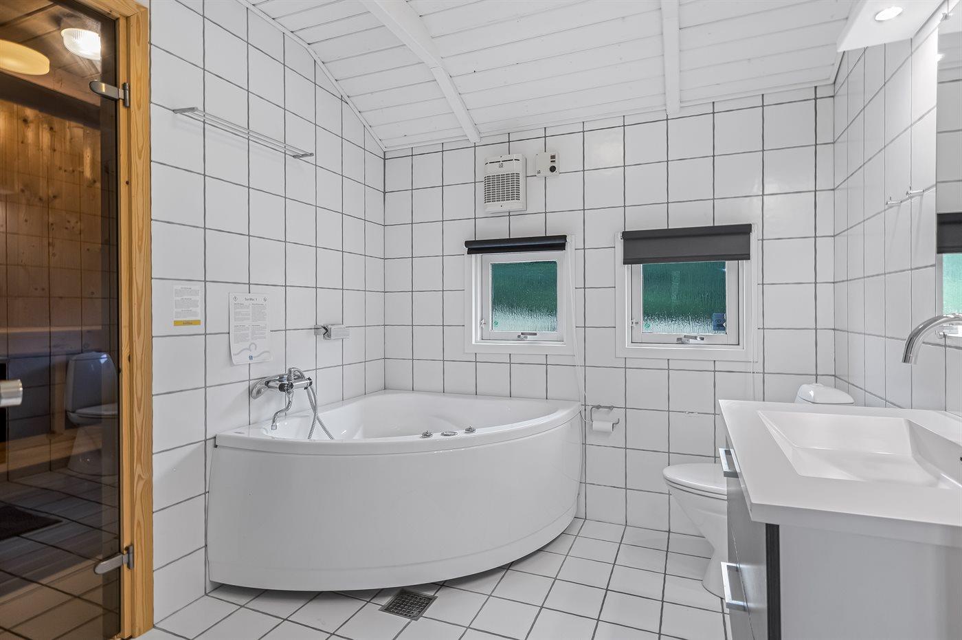 Der er 1 badeværelse med bruseniche og 2 toiletter, heraf 1 gæstetoilet. Der er gulvvarme på 1 badeværelse. I saunaen er der mulighed for afslapning.