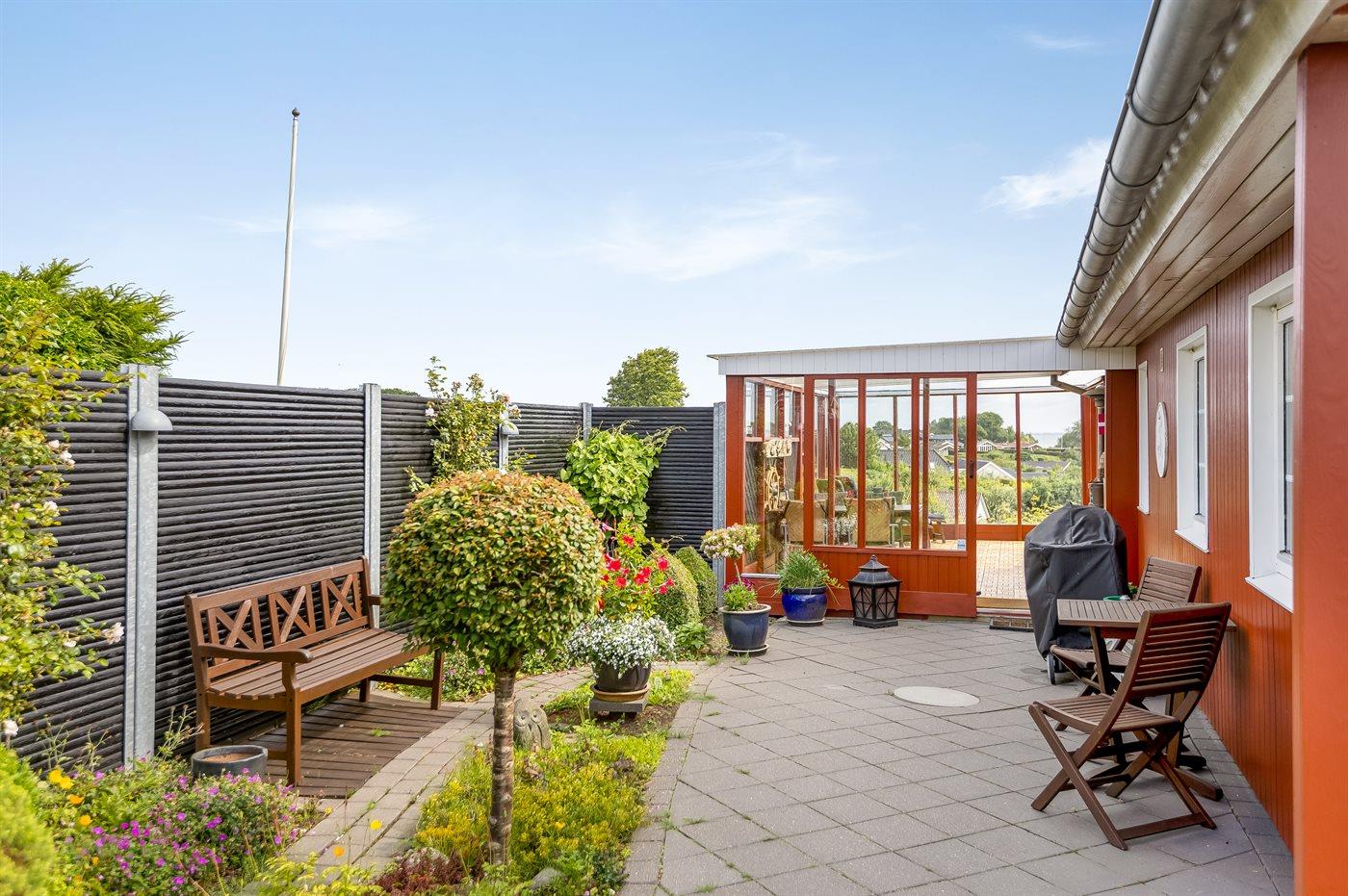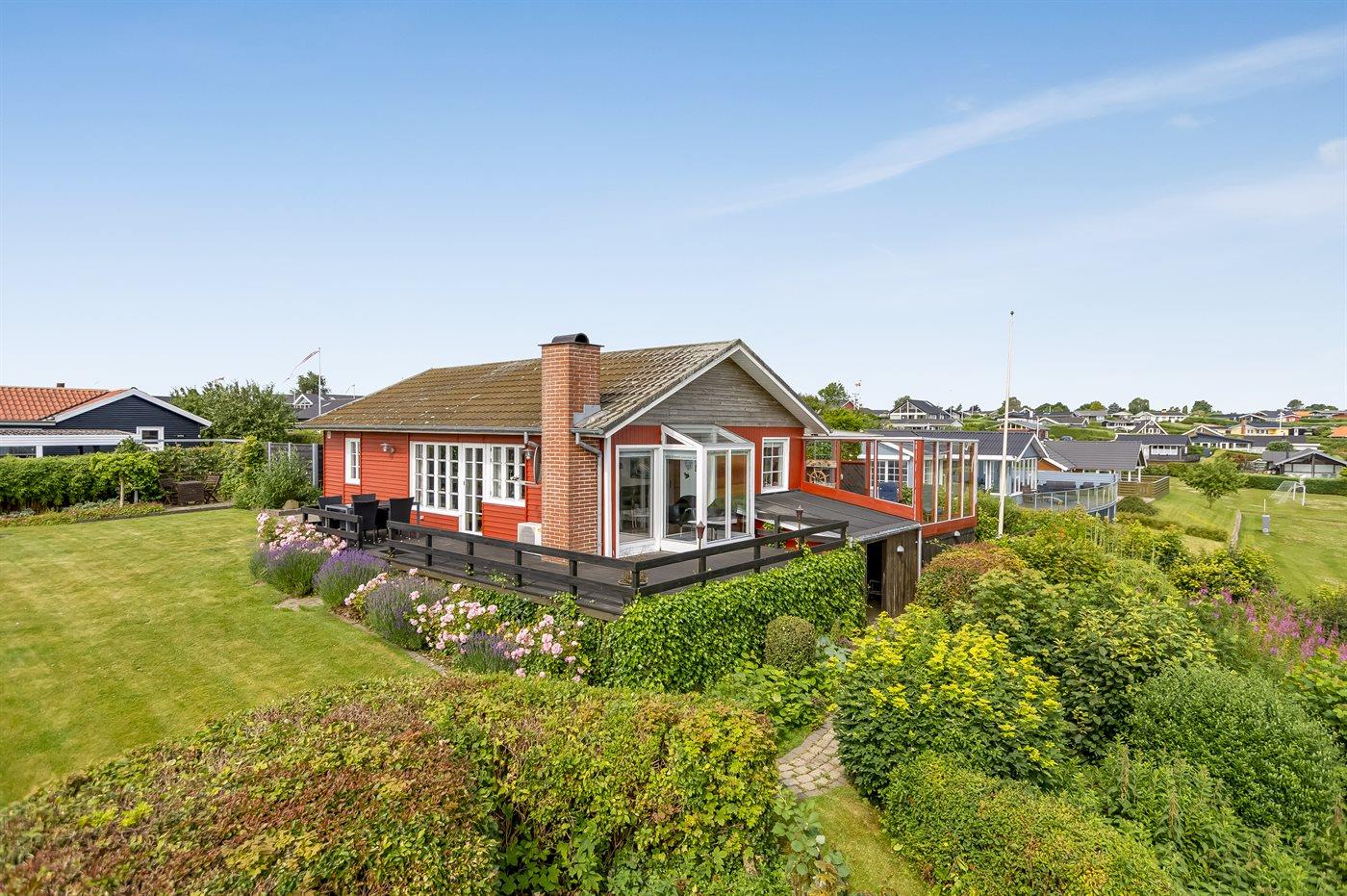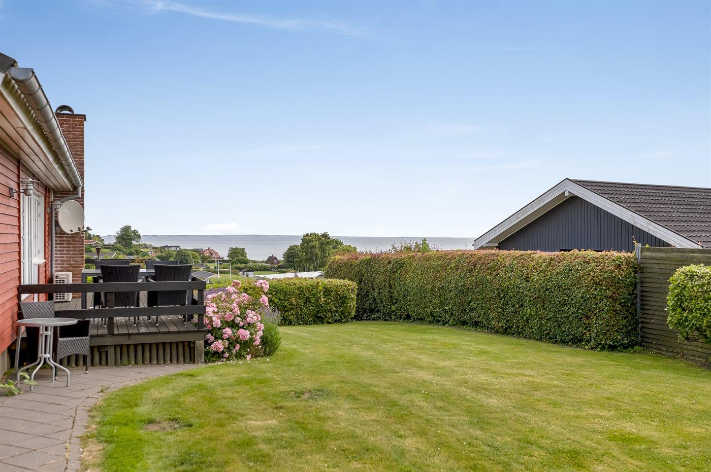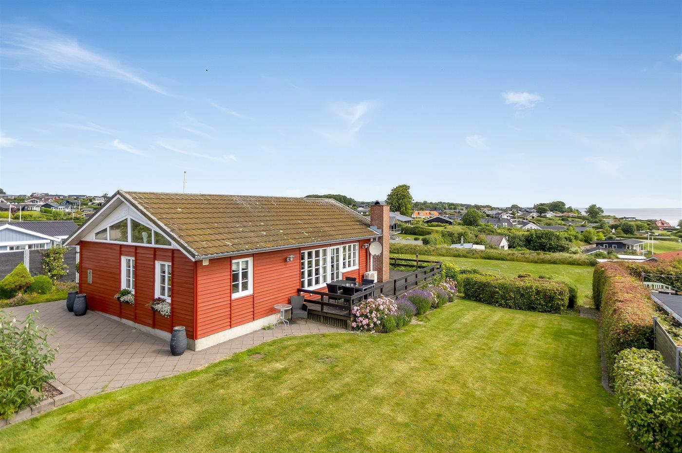 Sommerhus i Hejlsminde med fantastisk havudsigt og hyggelige terrasseområder tæt på stranden.