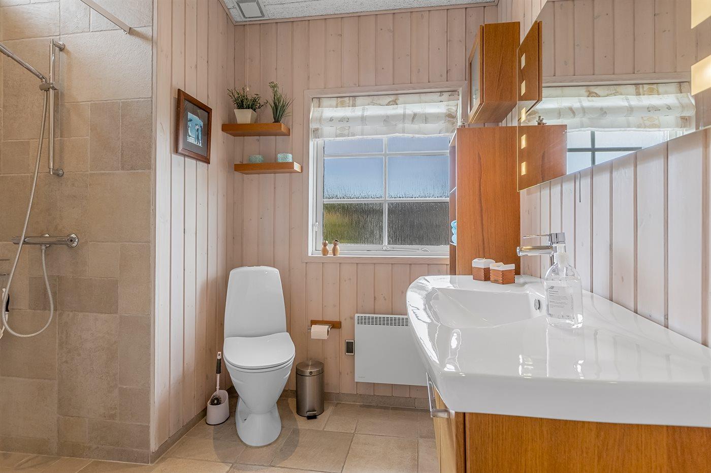Der er 1 badeværelse med bruseniche og 1 toilet.. Der er gulvvarme på 1 badeværelse.