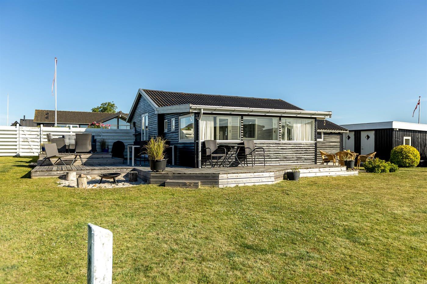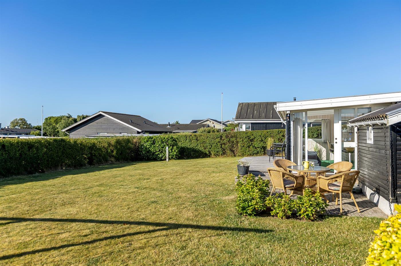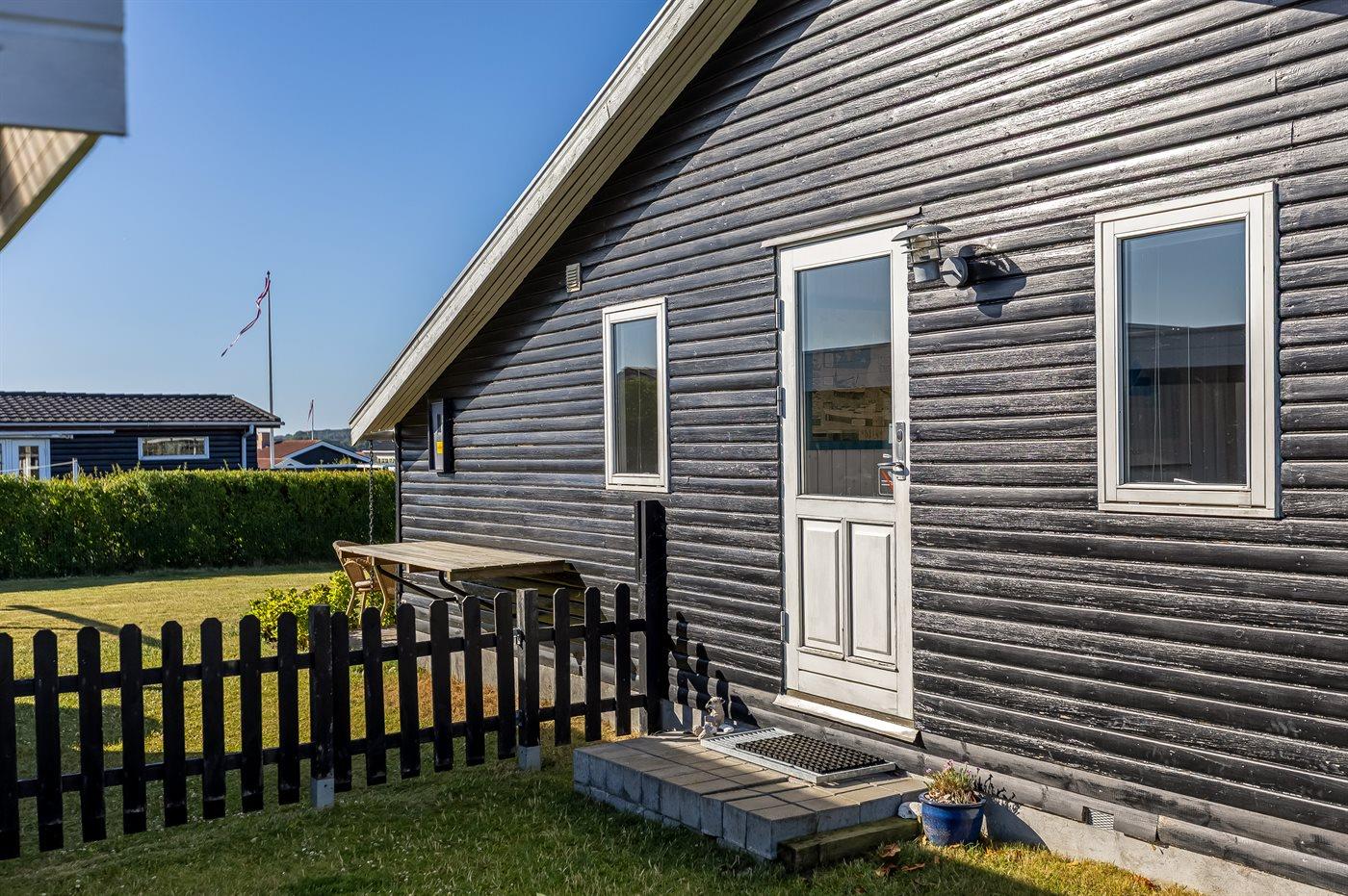 Ferieboligen er beliggende på en 600 m² stor Der er 175 m til havet. Nærmeste forretning er beliggende i en afstand af 3400 m. Til ferieboligen hører åbent terrasseareal. Ligeledes er der adgang til udestue. Gynge. Sandkasse. Der ligger en legeplads i en afstand af 75 m. Bålsted. Grill til rådighed. Der er carport til rådighed. Parkering ved ferieboligen.