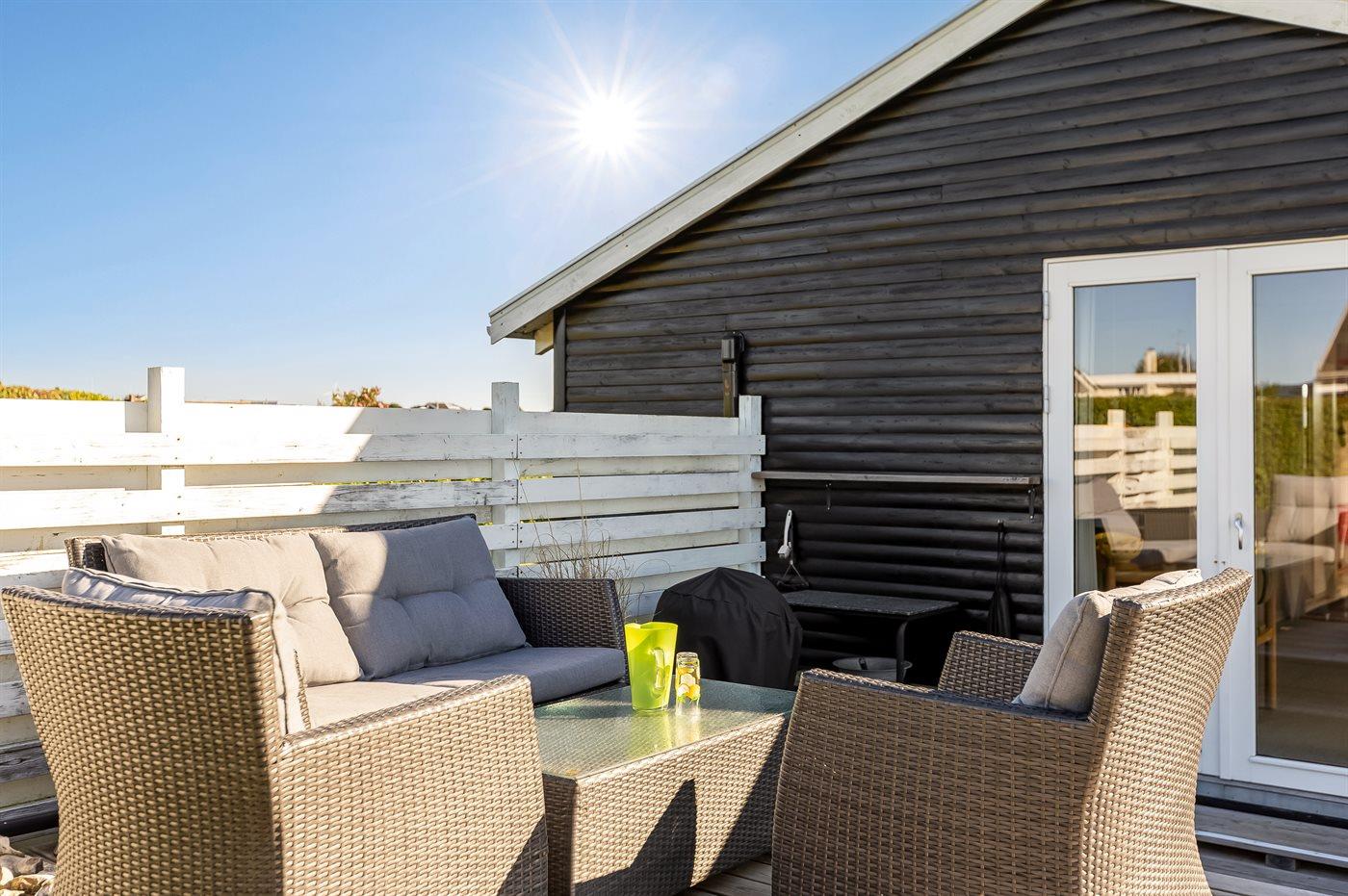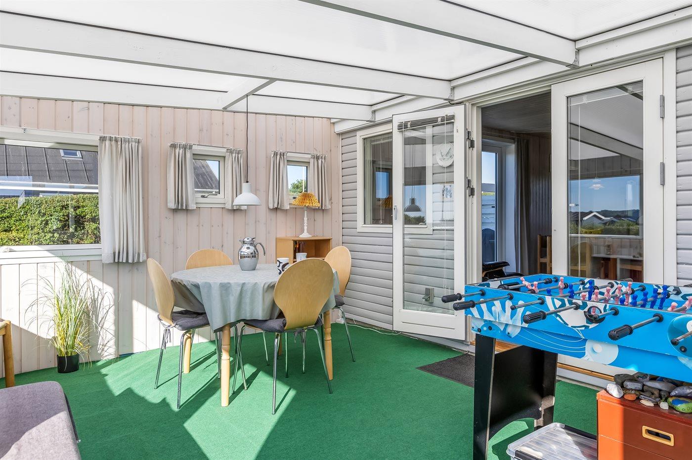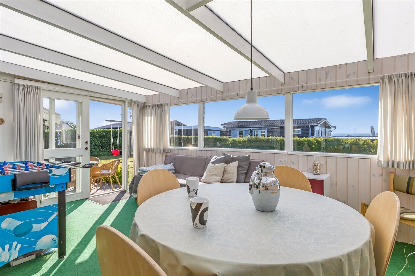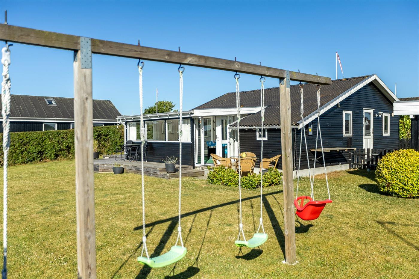 Ferieboligen er beliggende på en 600 m² stor Der er 175 m til havet. Nærmeste forretning er beliggende i en afstand af 3400 m. Til ferieboligen hører åbent terrasseareal. Ligeledes er der adgang til udestue. Gynge. Sandkasse. Der ligger en legeplads i en afstand af 75 m. Bålsted. Grill til rådighed. Der er carport til rådighed. Parkering ved ferieboligen.