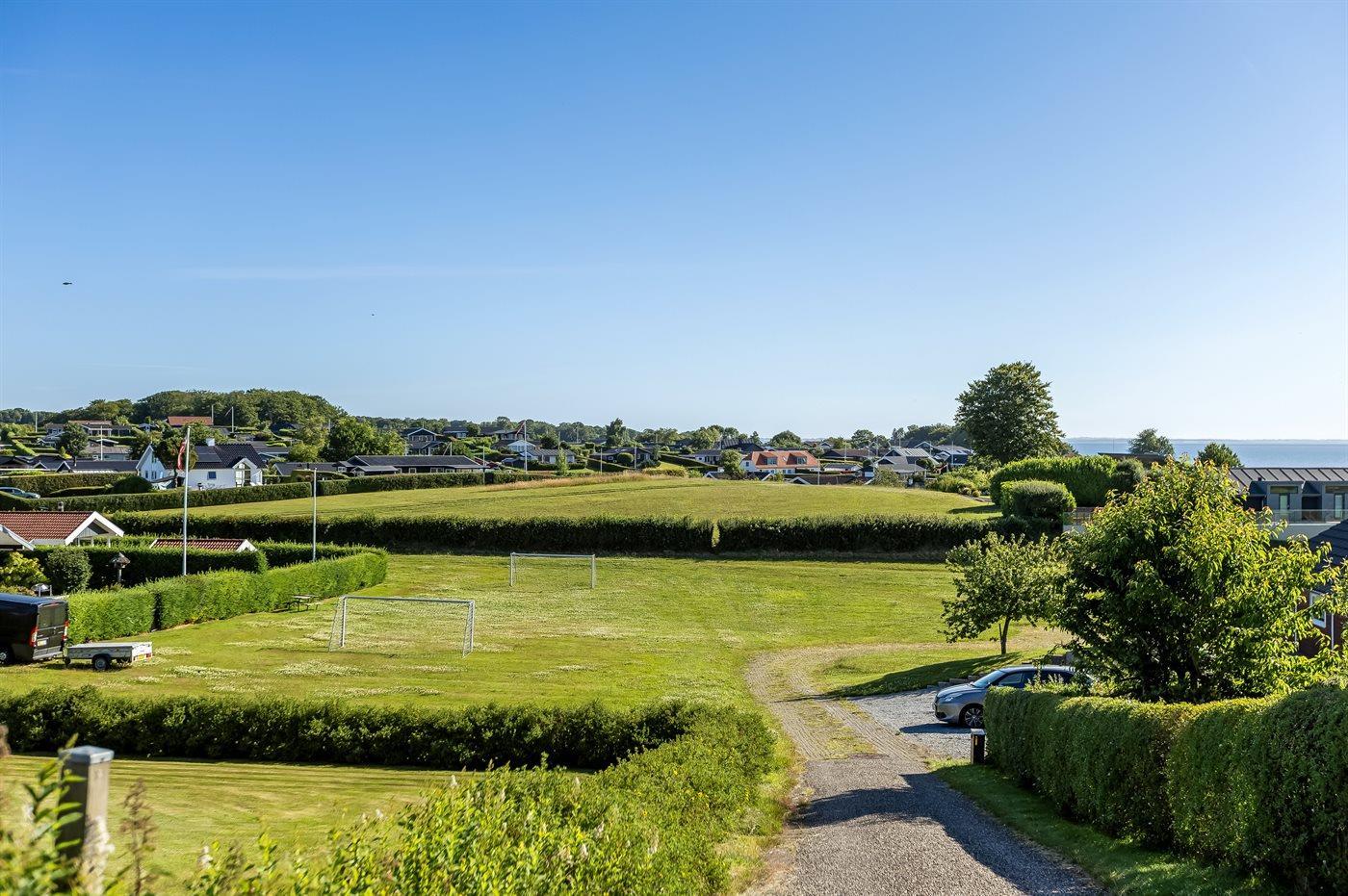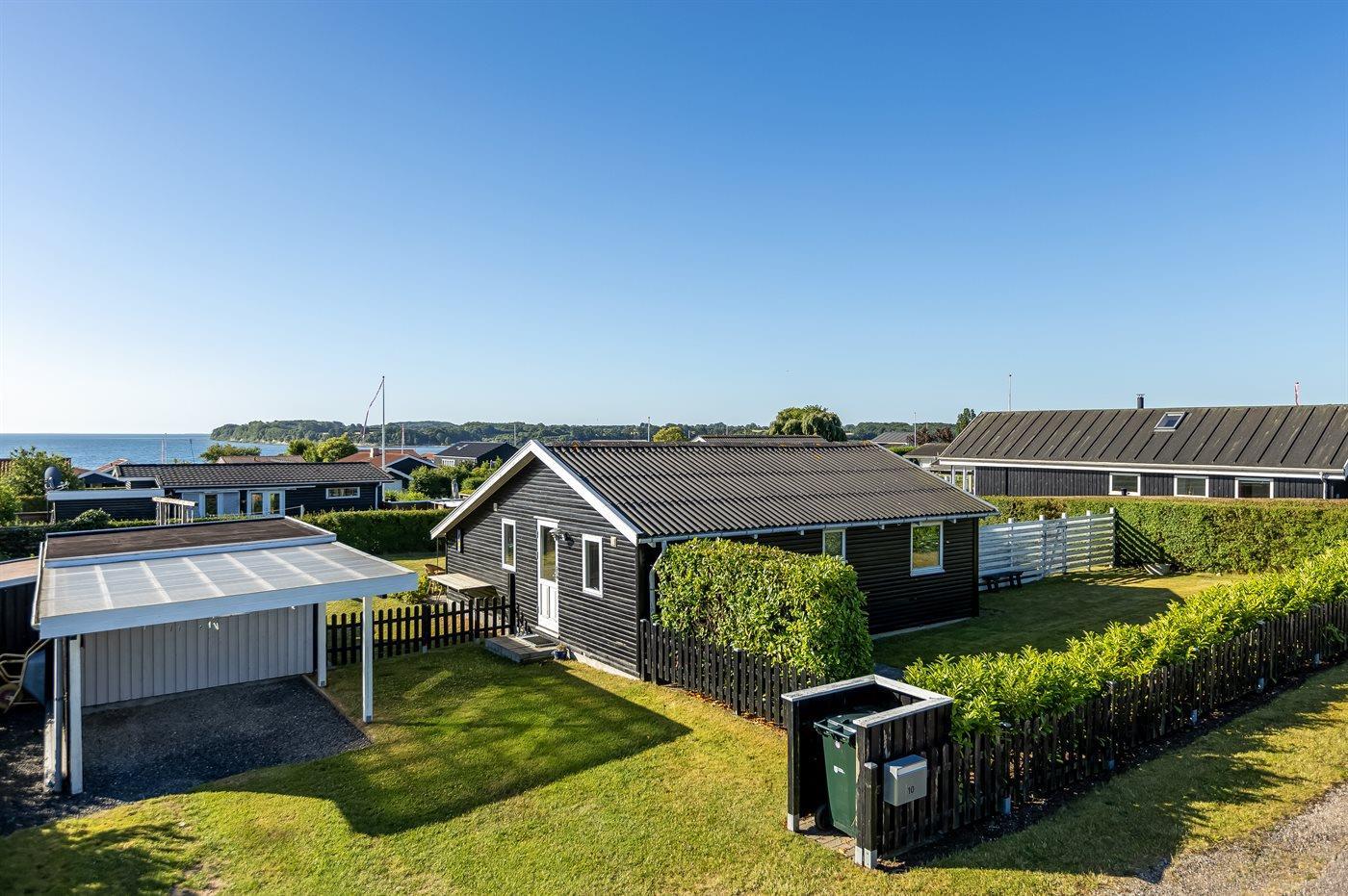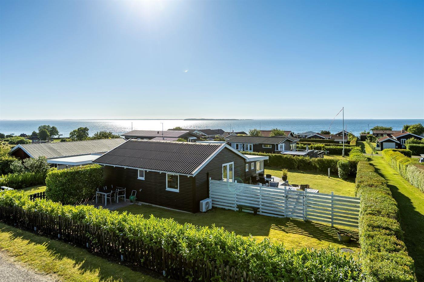 Hyggeligt sommerhus i Hejlsminde med havudsigt, udestue og legeplads tæt på stranden.