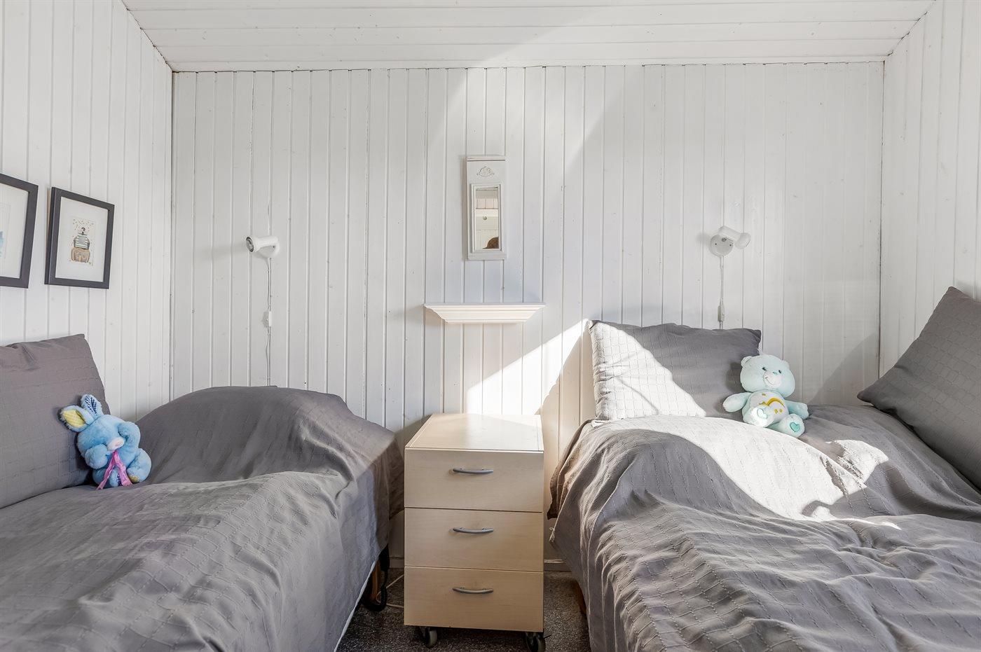 Der er i alt 2 soveværelser. Sovepladserne fordeler sig på: 4 sovepladser i enkeltsenge.