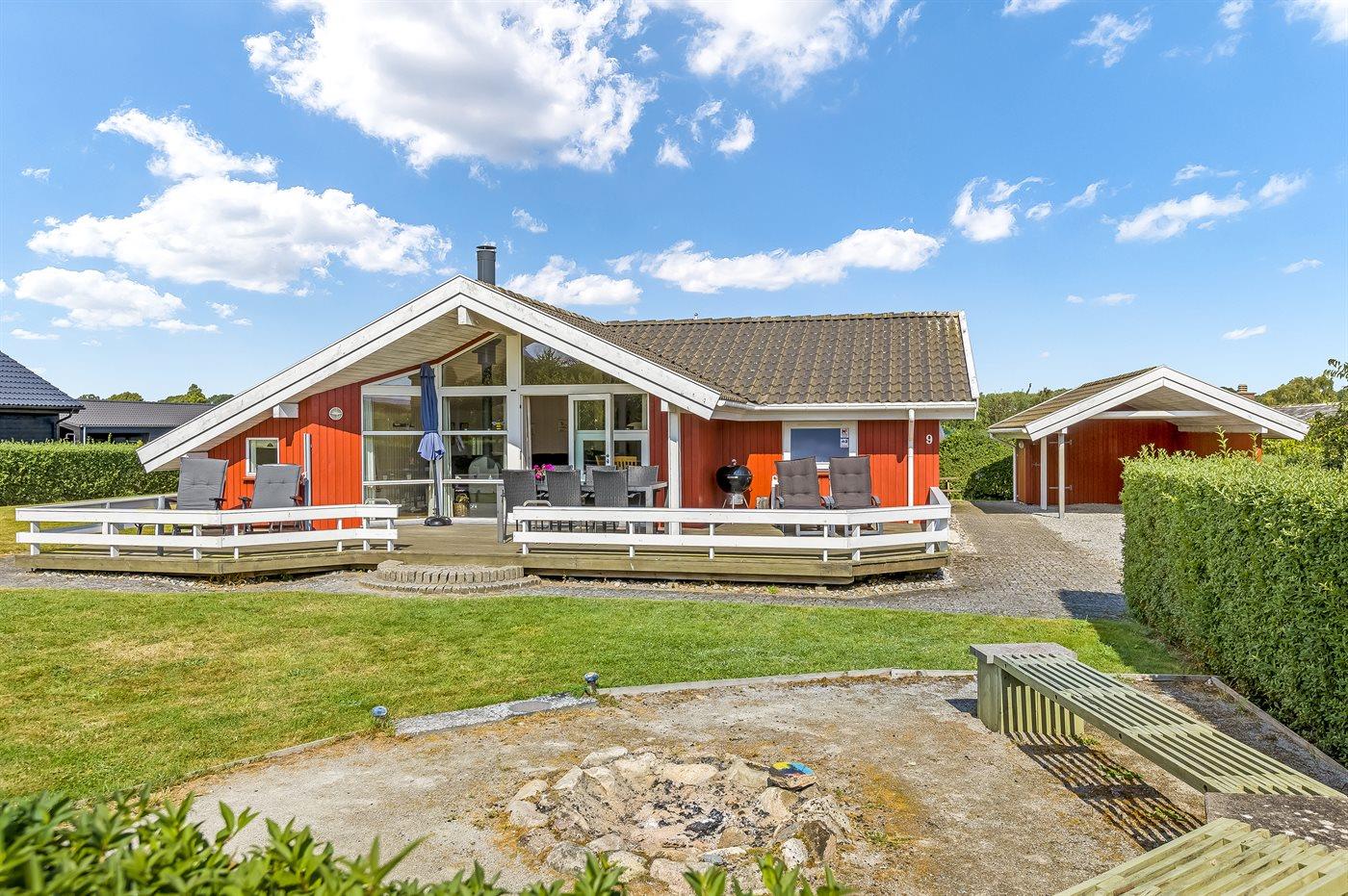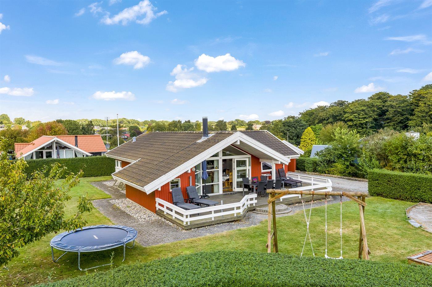 Hyggeligt sommerhus i Hejlsminde med spa, sauna, legeplads og nærhed til strand og hav.