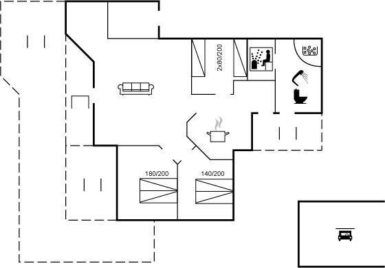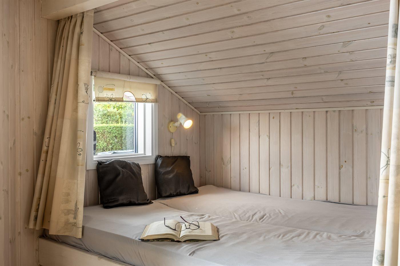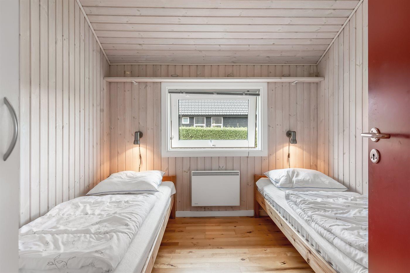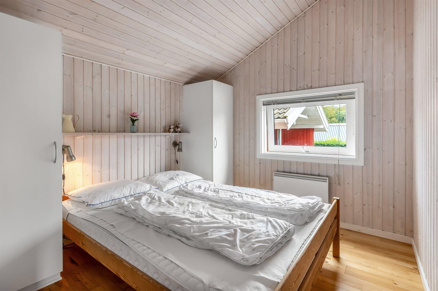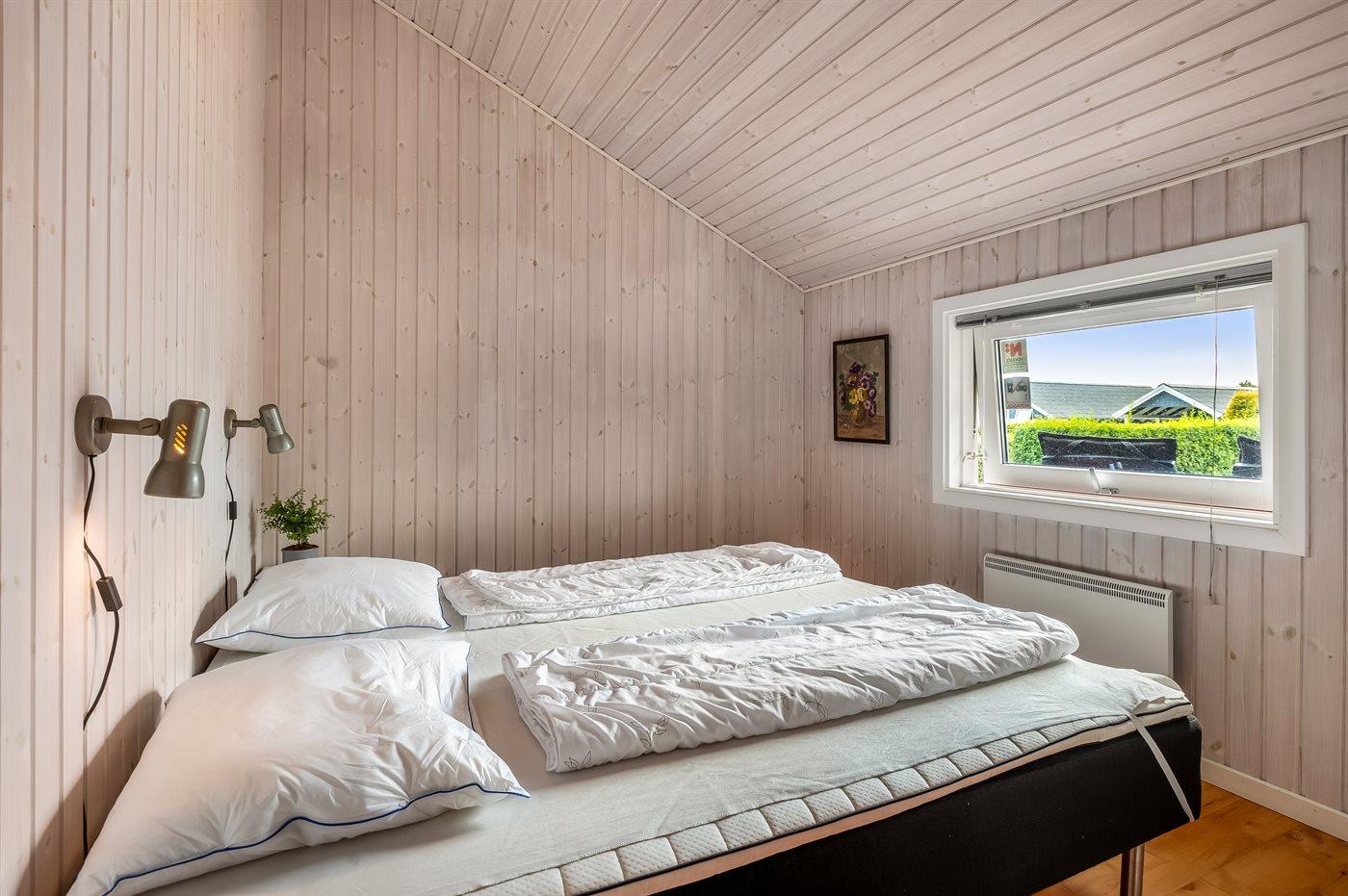 Der er i alt 3 soveværelser. Sovepladserne fordeler sig på: 4 sovepladser i dobbeltsenge. 2 sovepladser i enkeltsenge. Derudover er der 1 stk. barneseng.
