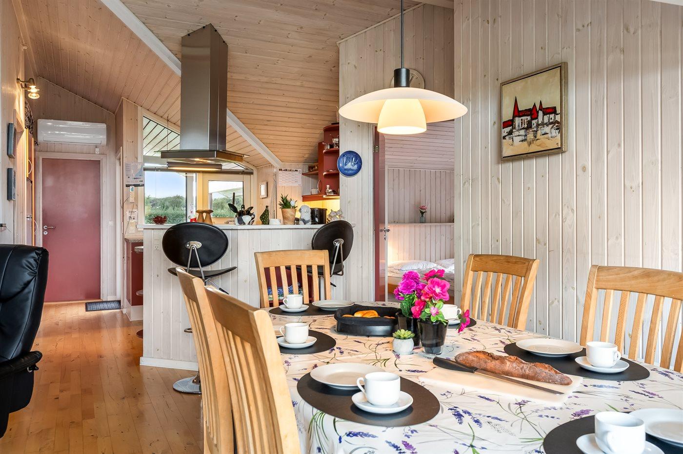 Sommerhuset egner sig til 6 personer samt 1 barn op til 3 år. Ferieboligen er på 87 m² og er bygget i 2002. Det er ikke tilladt at medbringe husdyr. Ferieboligen er udstyret med 1 energibesparende luft til luft varmepumpe. Ferieboligen har vaskemaskine. Tørretumbler. Frysekapacitet på 40 liter. Der er desuden brændeovn. Til de små er der 1 stk. barnestol.