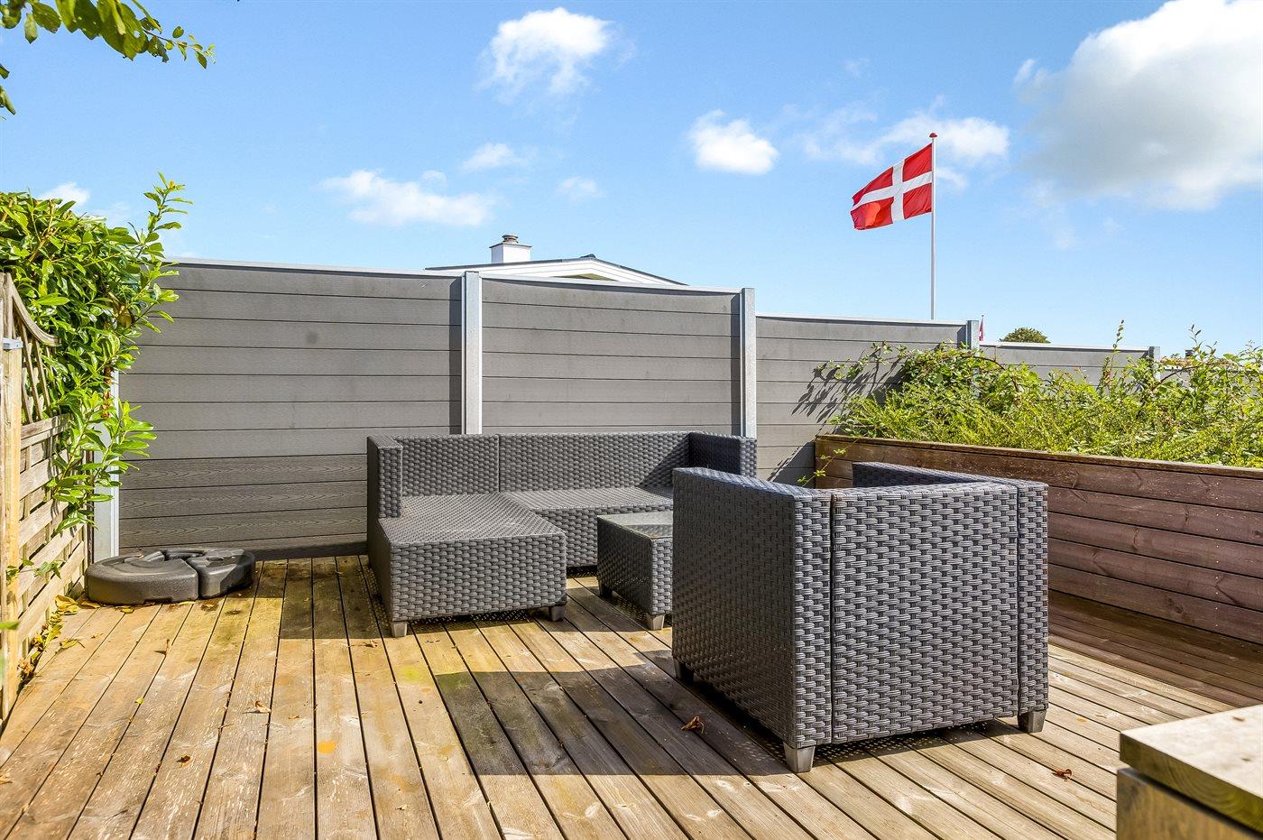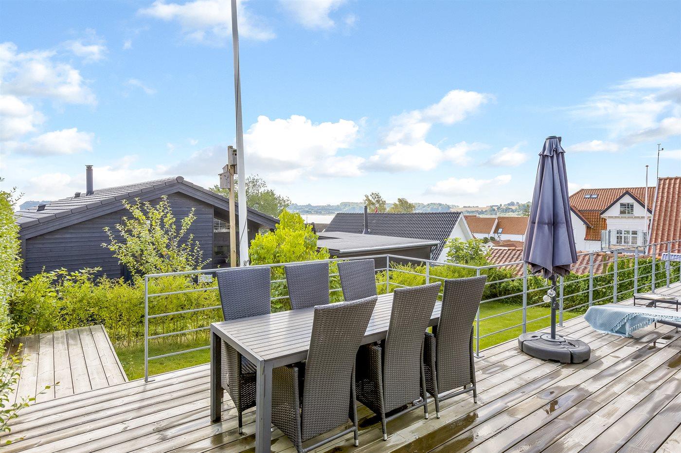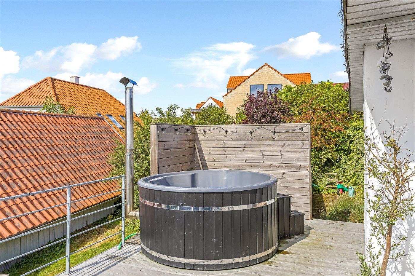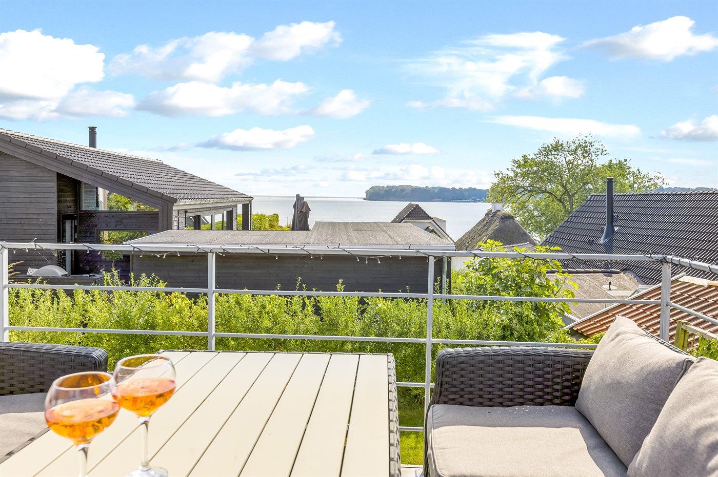 Nyd udelivet på husets terrasser – her er der mulighed for at nyde morgenkaffen, frokosten eller aftensmaden på forskellige steder alt efter solens placering. Den ene terrasse ligger højt på grunden og byder på en enestående udsigt over Lillebælt. Vildmarkskaret er klar til brug – køb brænde direkte hos husejeren, tænd op, vent på at vandet bliver varmt og læn dig tilbage med et glas bobler, mens du nyder roen.