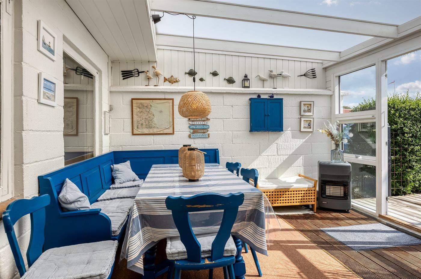 Huset er indrettet med to soveværelser, placeret i hver sin ende af huset, og som en ekstra mulighed findes der et rummeligt anneks med to sovepladser. Sommerhuset blev renoveret i 2018 og fremstår lyst og moderne med nyt køkken og stue fordelt på 61 veludnyttede kvadratmeter samt en hyggelig udestue på 15 kvadratmeter.