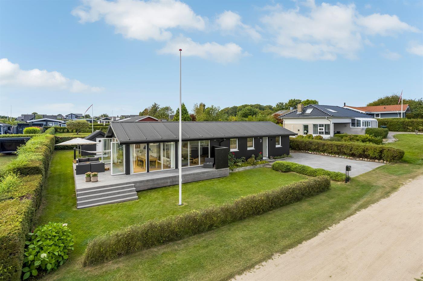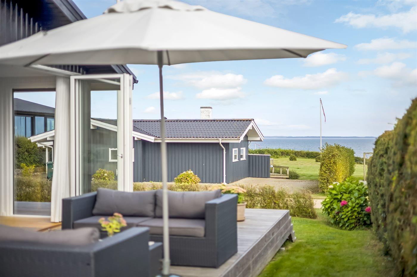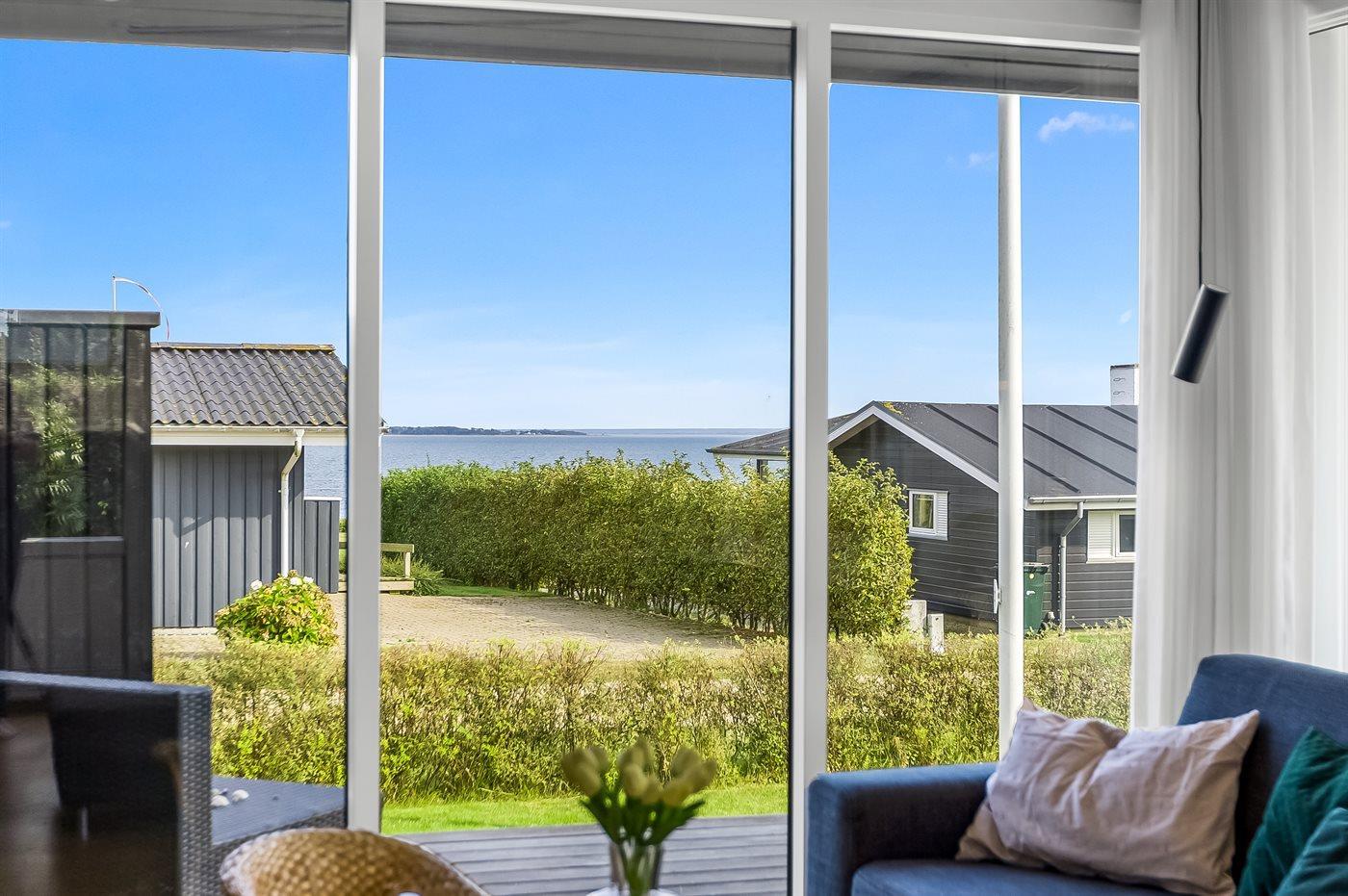 Skønt sommerhus i Hejlsminde med havudsigt, moderne indretning og kun 75 m til børnevenlig strand.