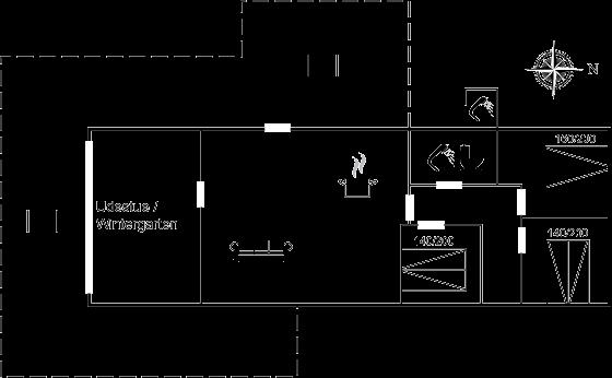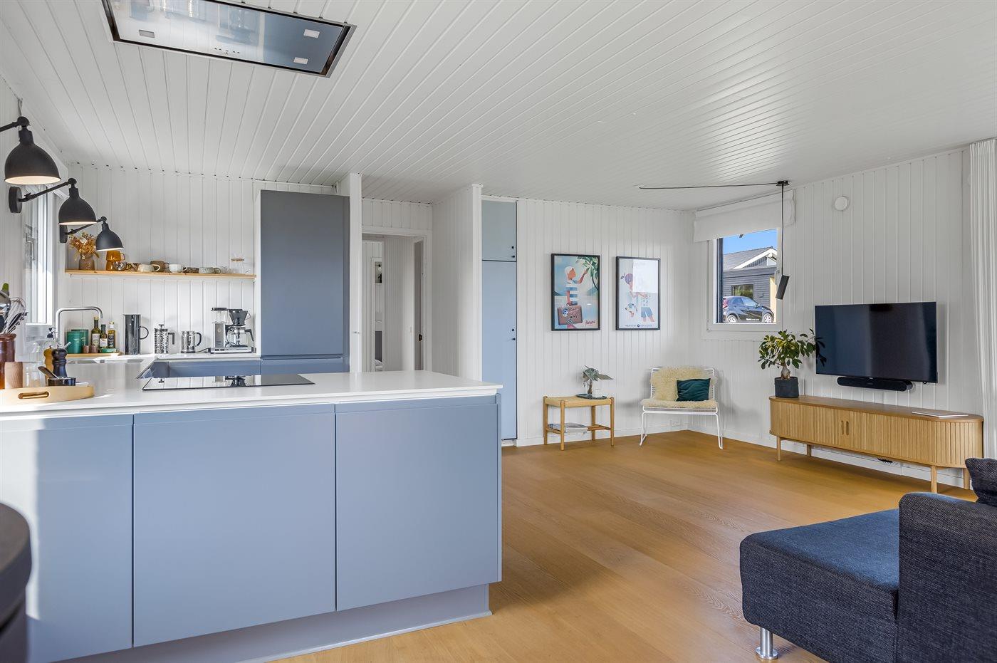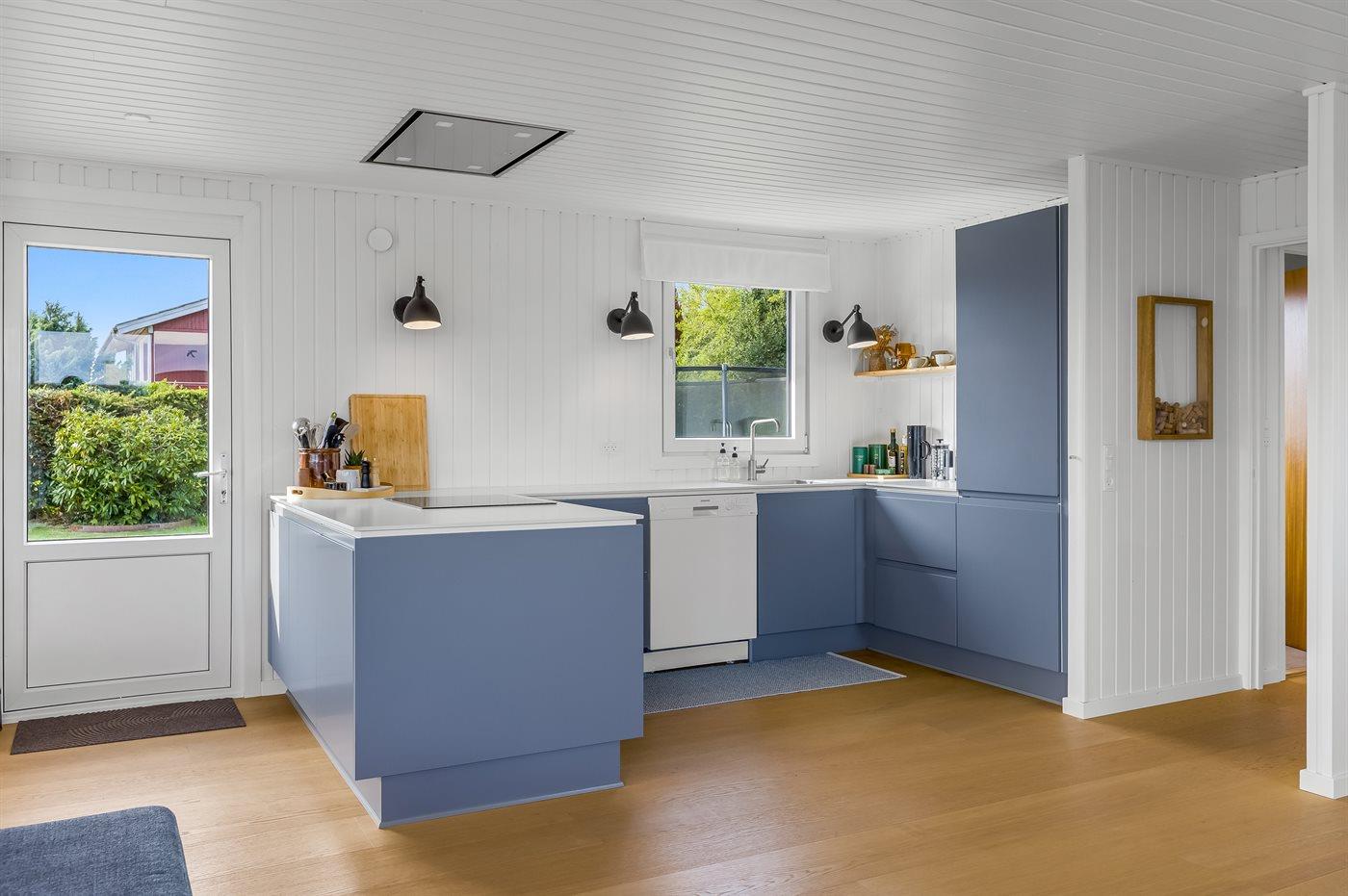 Køkkenet er udstyret med 1 køleskab. Der er 4 induktionskogeplader, varmluftovn samt opvaskemaskine.