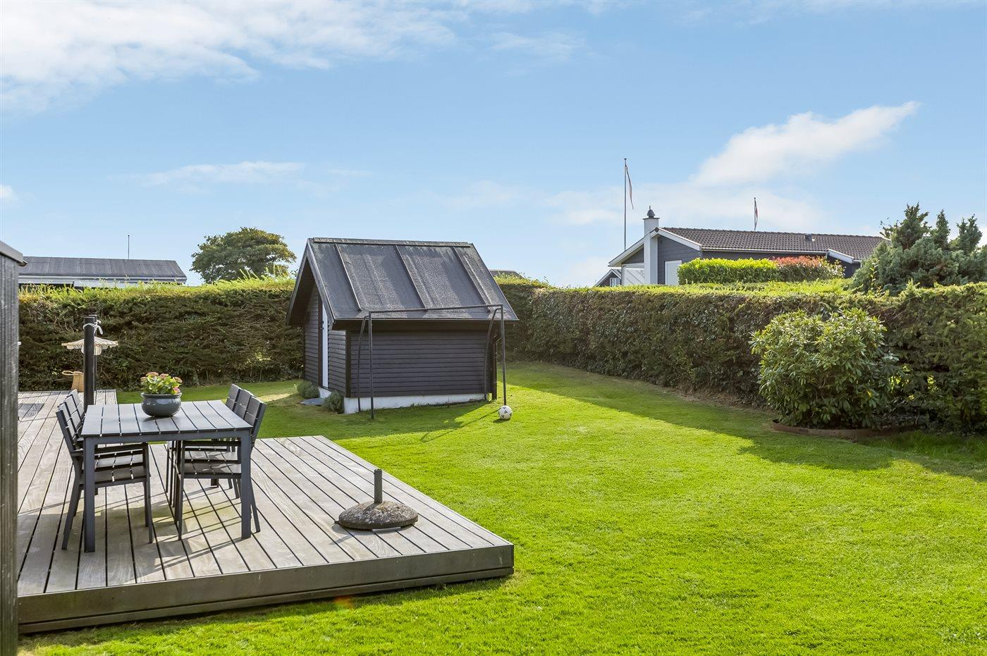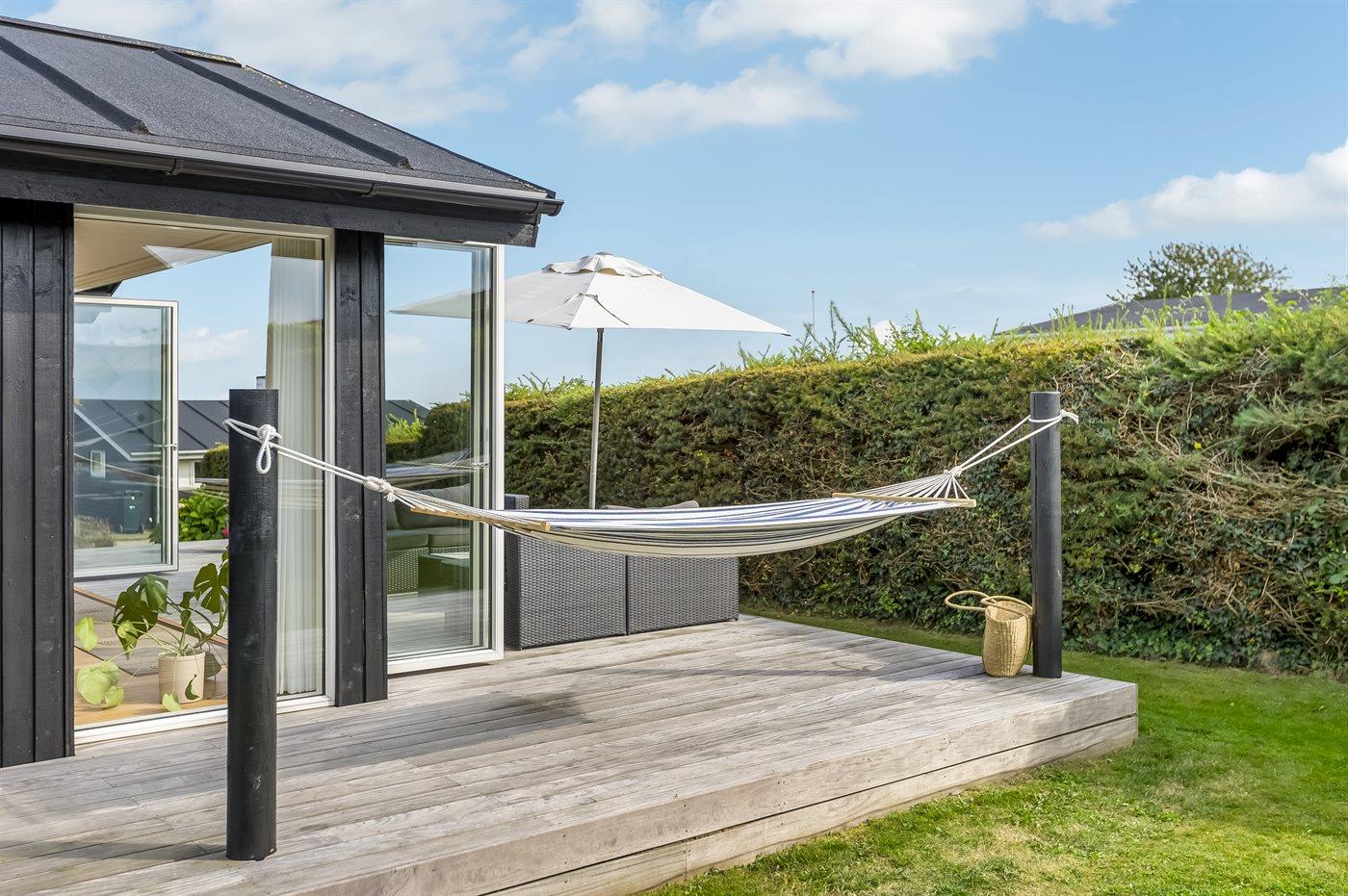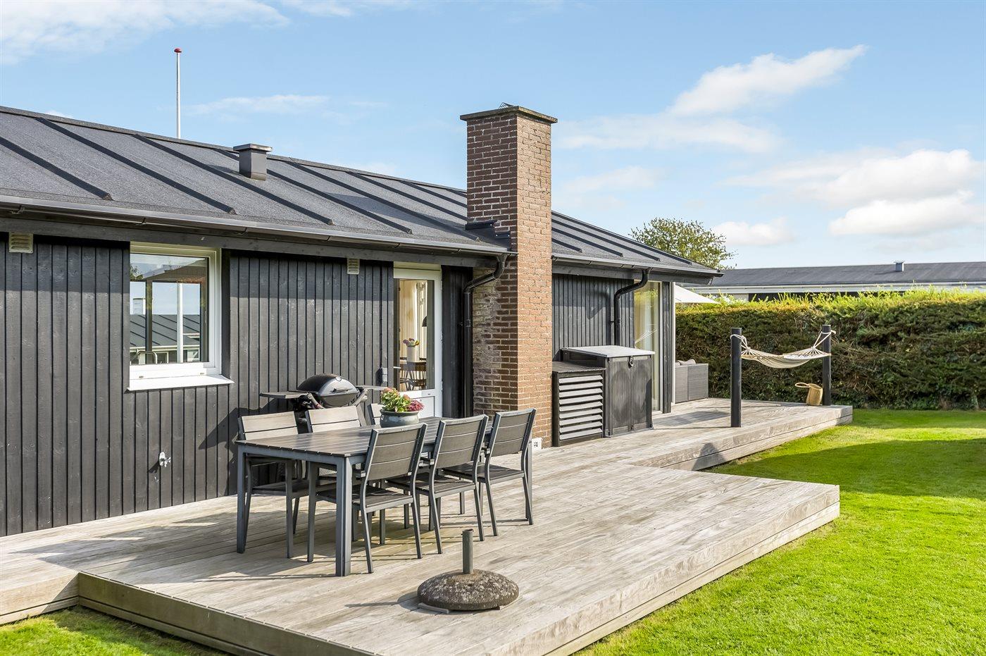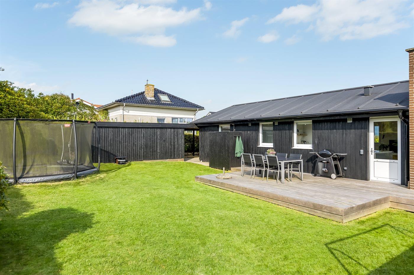 Til børnene finder I en stor trampolin samt fodboldmål i haven, ligesom græsplænen m.v. inviterer til leg udenfor.