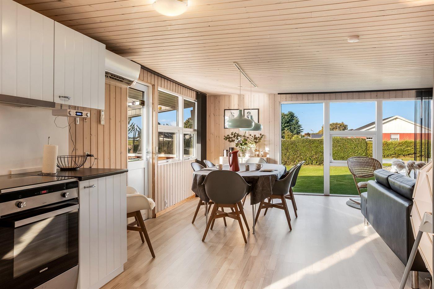 I dette sommerhus i Hejlsminde får I de perfekte rammer for en dejlig ferie. Huset er lyst, rummeligt og indrettet med fokus på hygge – og der er plads til seks personer fordelt på tre separate soveværelser. Det store køkken-alrum giver masser af plads til både samvær og indendørs aktiviteter, og herfra er der direkte adgang til en overdækket terrasse med et skønt loungesæt, hvor I kan slappe af og nyde mange hyggelige stunder.
