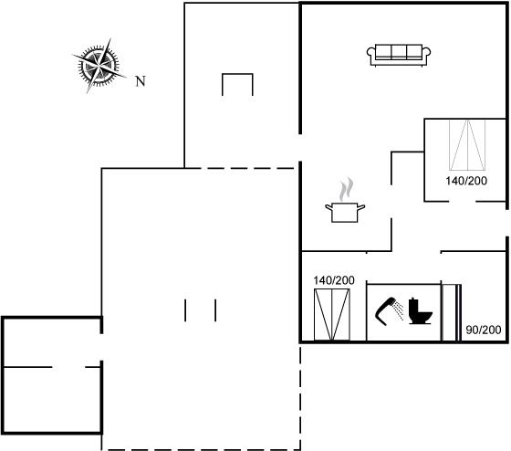 Der er i alt 3 soveværelser. Sovepladserne fordeler sig på: 4 sovepladser i dobbeltsenge. 2 sovepladser i køjeseng. Derudover er der 1 stk. barneseng.