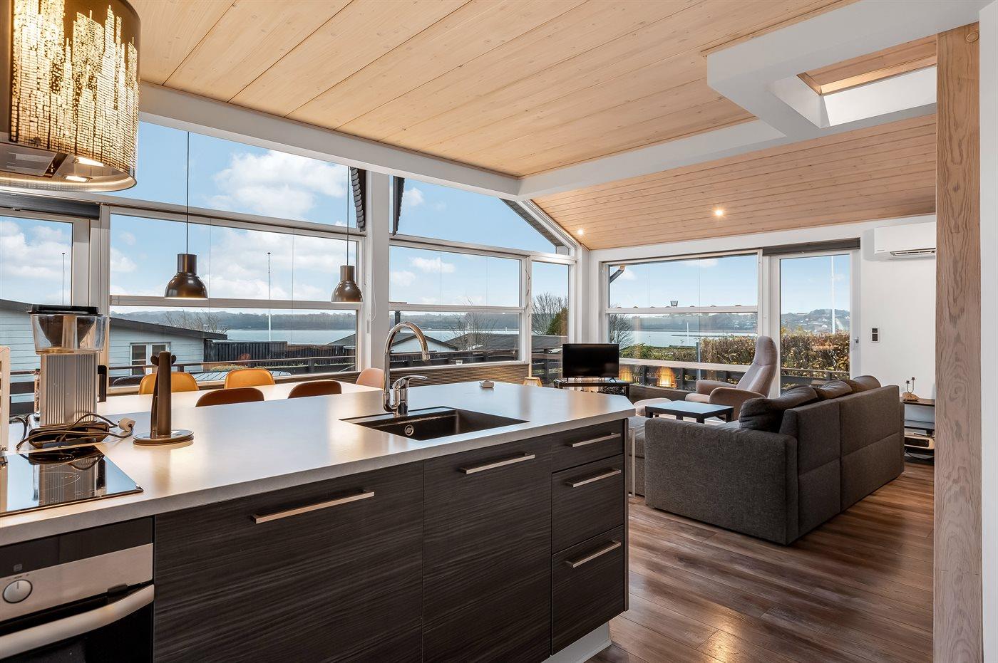 Alt i alt et sommerhus, der byder på både komfort, udsigt og ægte ferieidyl ved vandet.