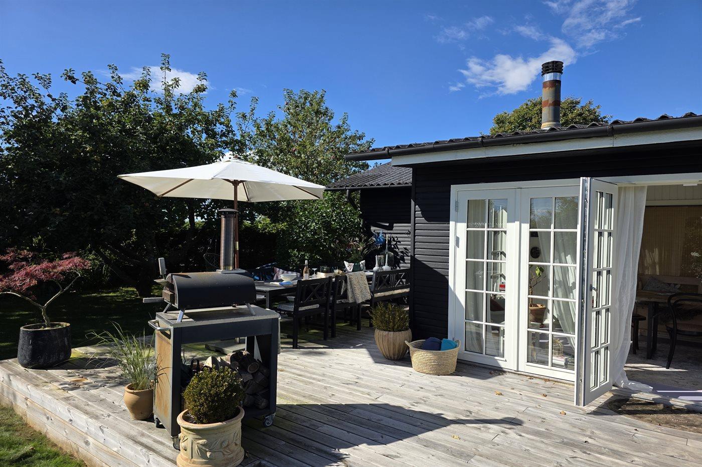 Hyggeligt sommerhus med vildmarksbad og bålsted