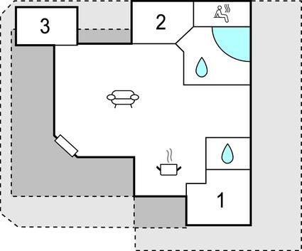 Badeværelse (nr. 1) - WC. Varmt og koldt vand. Bruser
