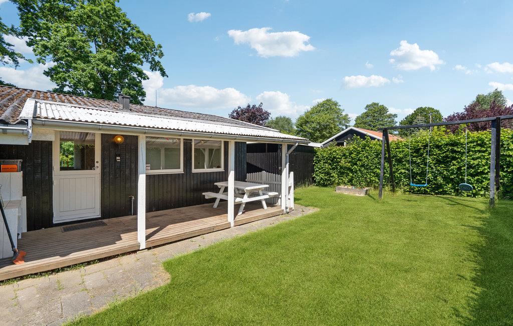 Hyggeligt fritidshus i Hejlsminde med brændeovn, terrasse og stor have tæt på natur og familieoplevelser.