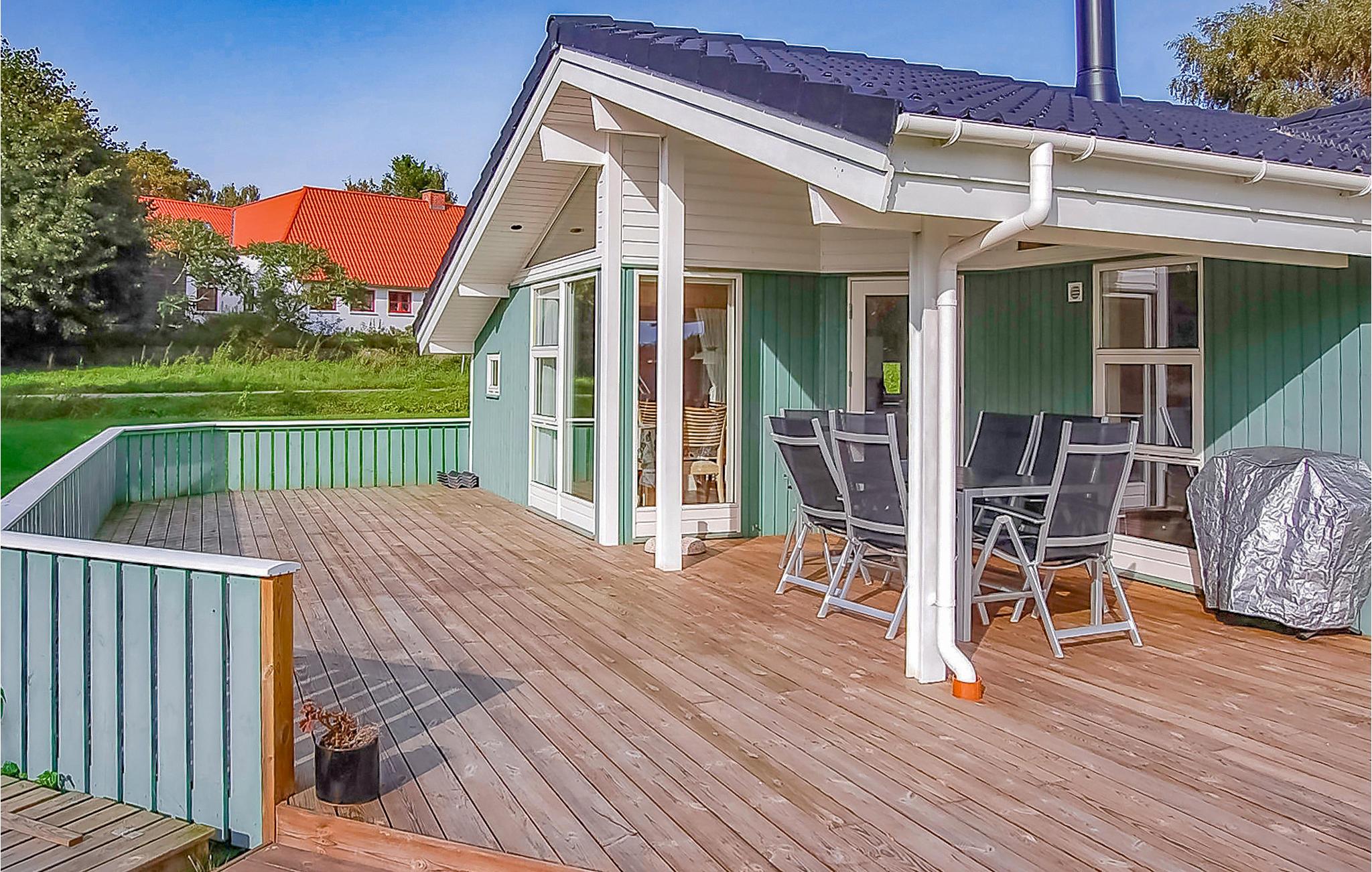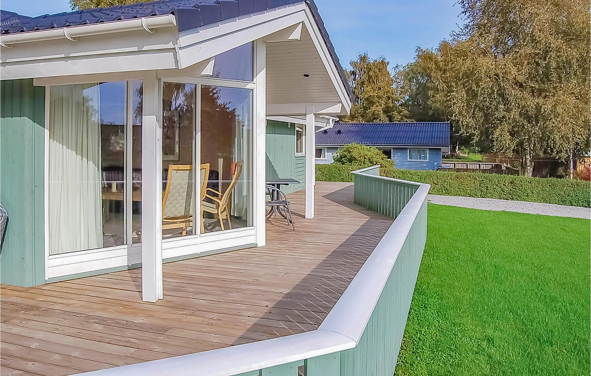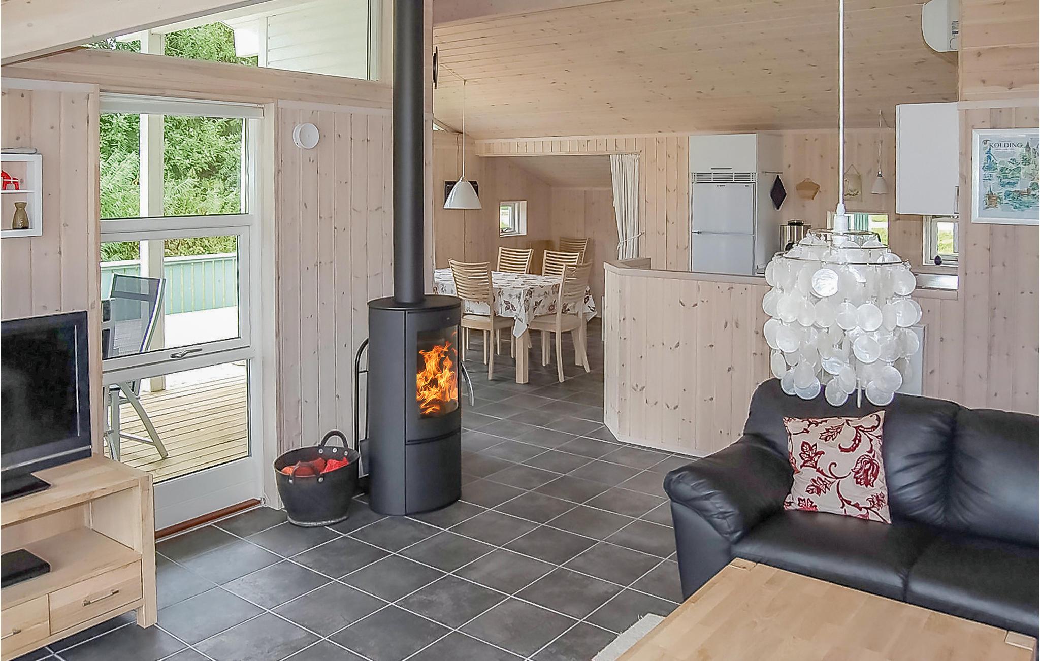 Midt i et stort feriehusområde ligger dette pragtfulde feriehus af træ på en anlagt havegrund. Huset er helt igennem moderne indrettet med komfortable møbler samt et veludstyret køkken. Fra stuen er der udgang til en stor terrasse mod syd og sydvest til aftensolen. Området er børnevenligt med et stort stisystem til dejlige spadsereture, og få meter fra huset findes der boldbane og legeplads. Der er gode fiskemuligheder i nærheden, hvor der også er mulighed for at leje både m. motor. Legoland og Givskud Zoo kan nås på under 1 times kørsel i bil.