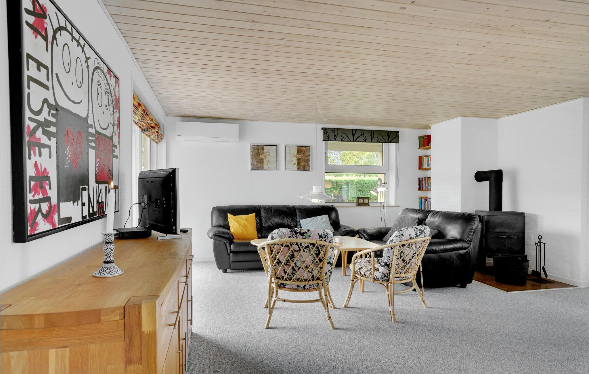 Centralt i ??huset ligger opholdsstuen med sofahjørne, spiseplads og en hyggelig brændeovn. Her kan I sætte jer til rette med en bog efter en lang dag med aktiviteter eller give jer god tid til madlavningen i køkkenet, så har alt, hvad I skal bruge på ferien.