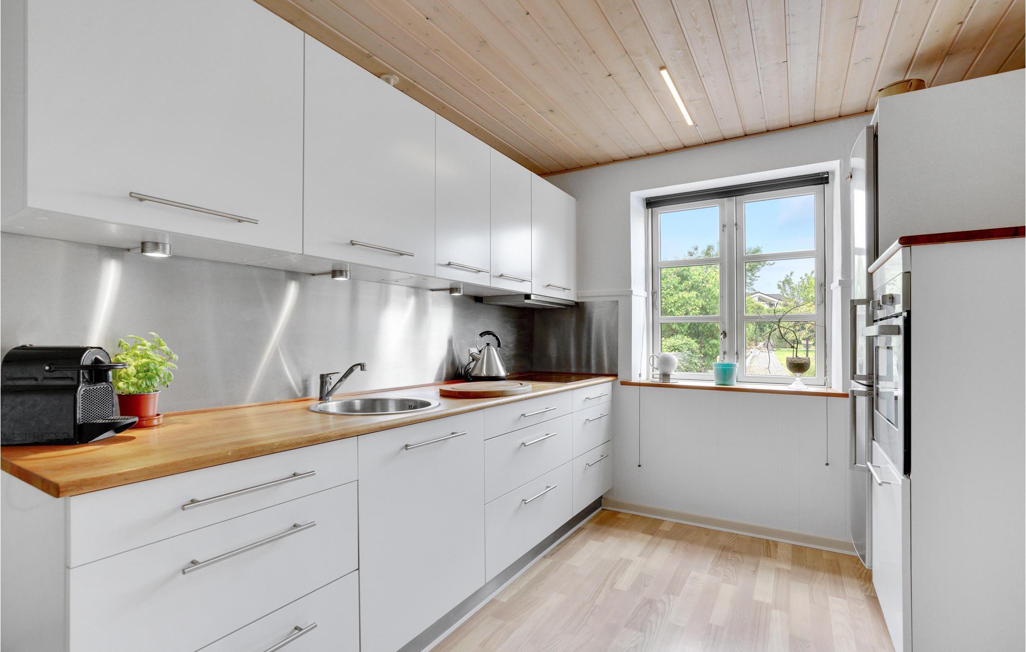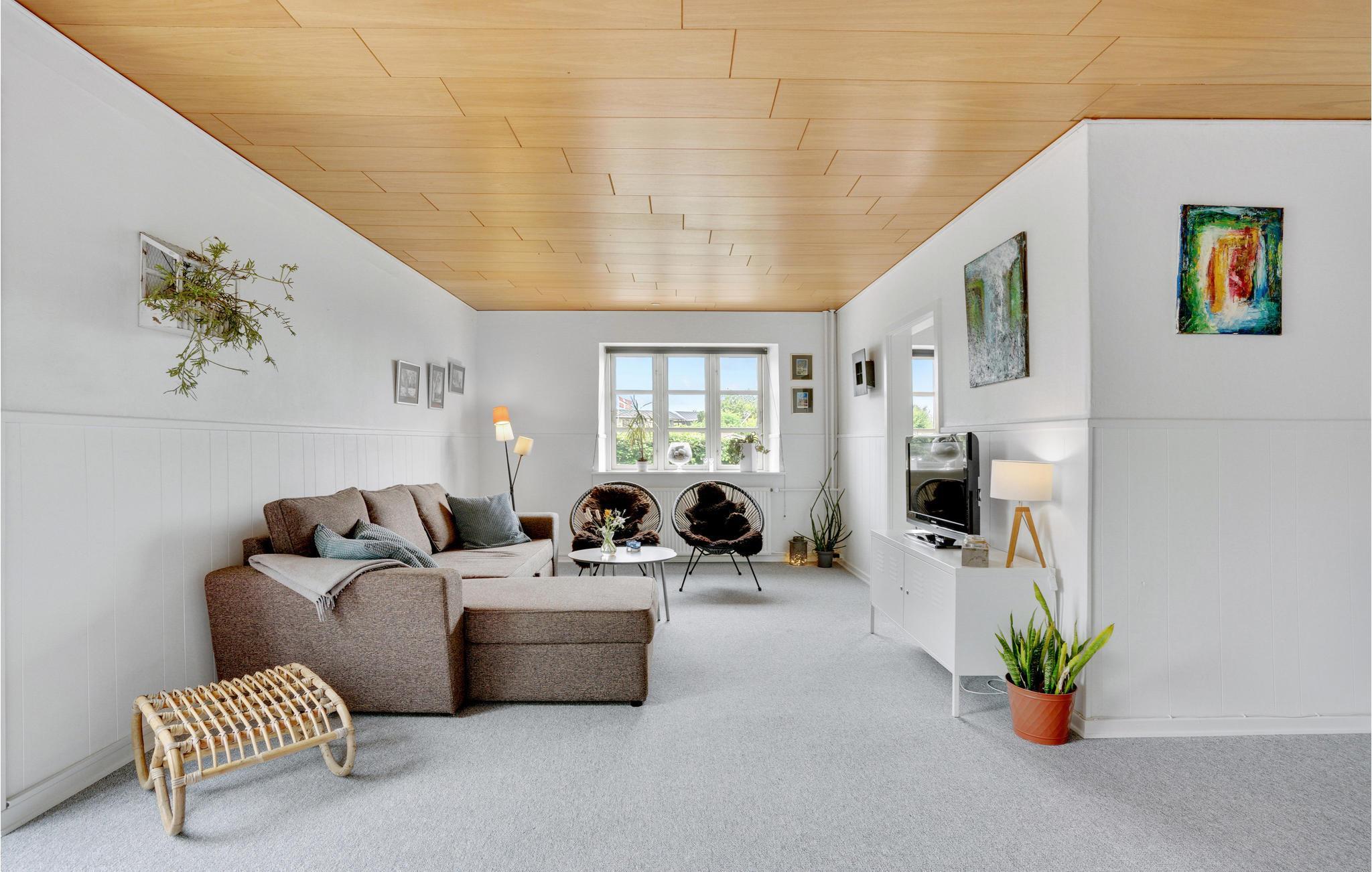 Velkommen til denne lyse og indbydende ferielejlighed, der ligger direkte ved stranden og indbyder til en skøn pause fra hverdagen. Tryl lækre retter frem i det moderne køkken, og tag plads ved det stilfulde spisebord. Hyg jer med en fælles filmaften, eller fordyb jer i en god bog, som der måske ikke har været tid til i hverdagen.