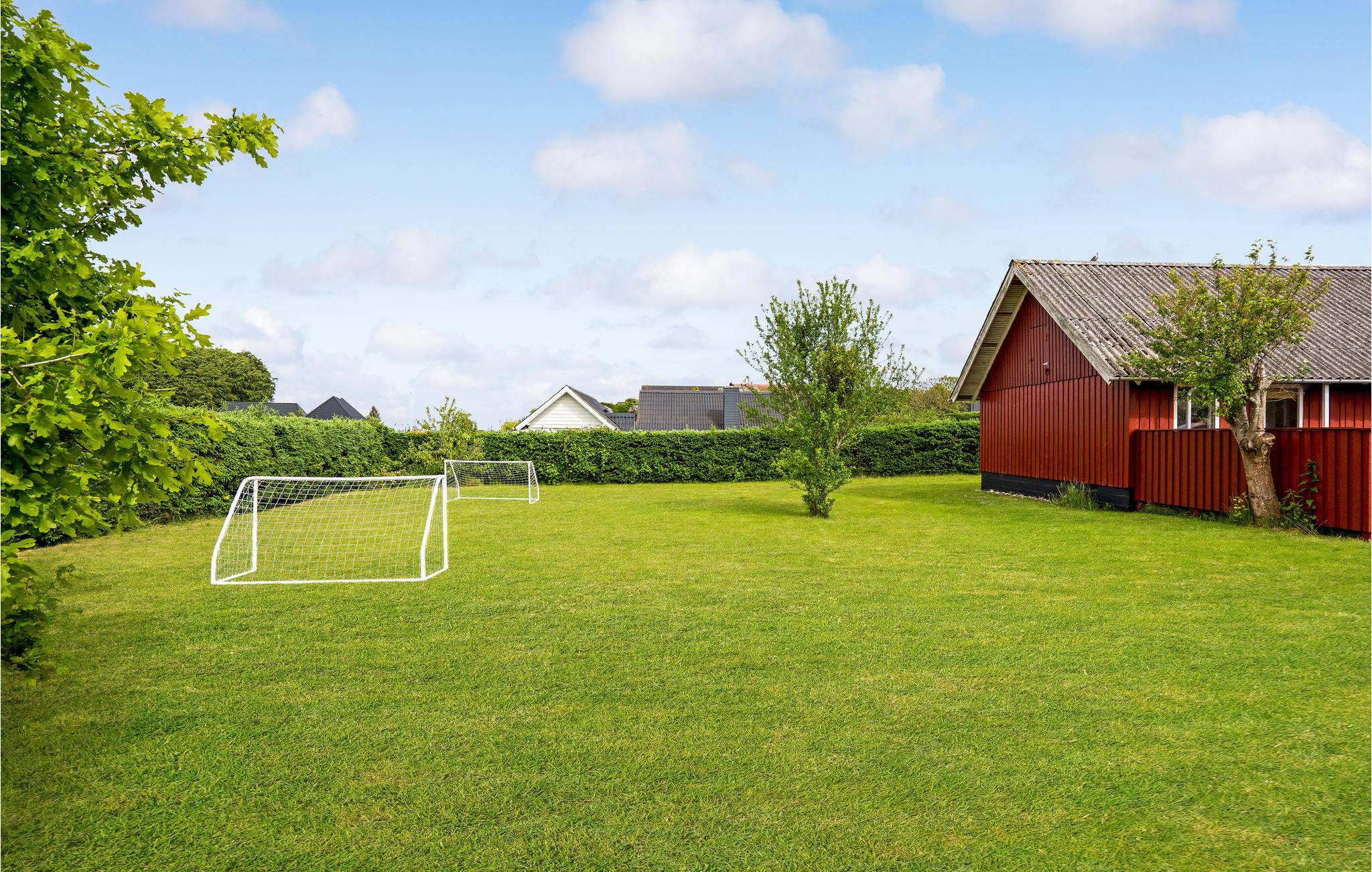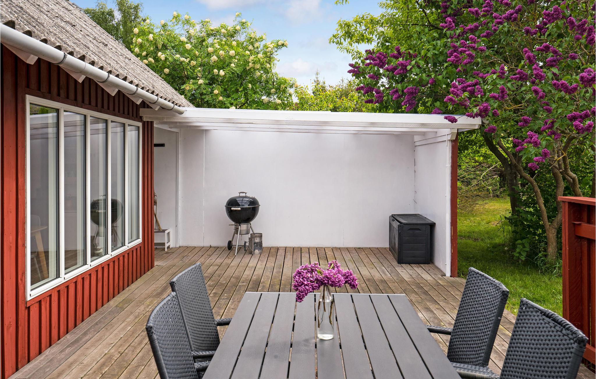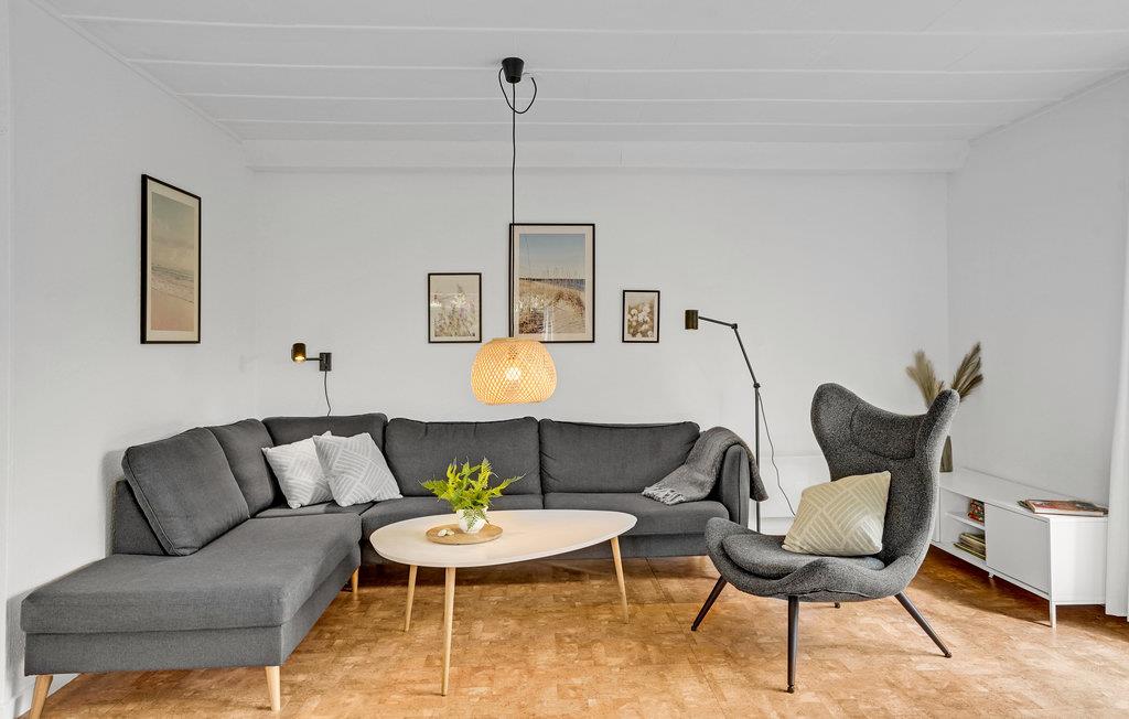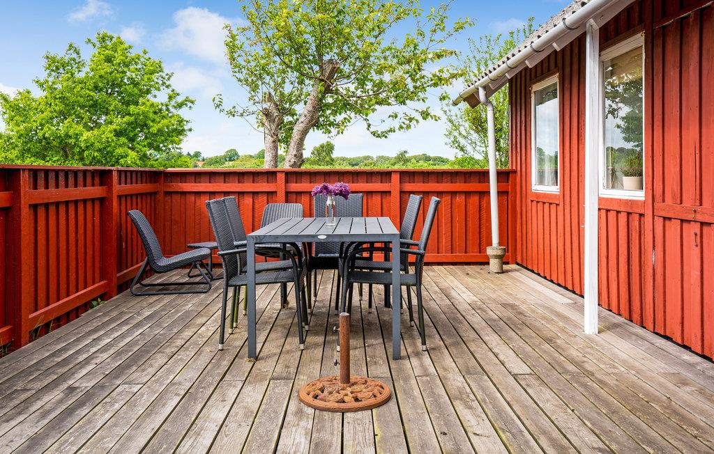 Udenfor finder I flere hyggelige kroge på terrassen og grunden, hvor I kan nyde morgenkaffen eller de milde sommeraftener. Børnene får frit spil til at boltre sig på grunden, hvor der står legestativer klar til dem - og imens kan I slappe af i havemøblerne eller forberede aftensmaden på grillen.