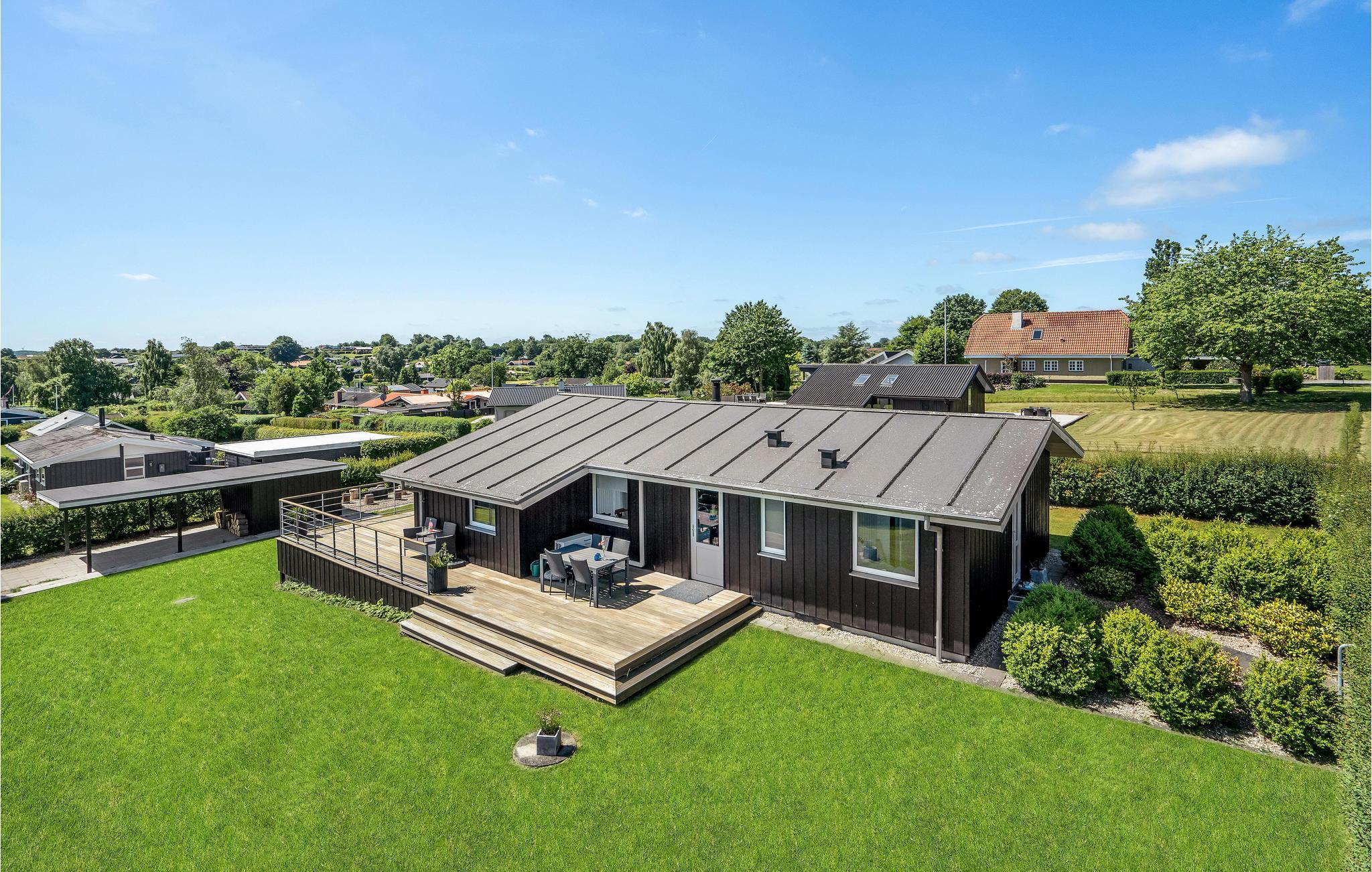 Udenfor finder børnene gode underholdningsmuligheder i form af legehus, gynge, sandkasse, volleyballnet og mere. Husets hævede terrasse er udstyret med komfortable havemøbler til solbadning og udendørsspisning, og selvfølgelig har I også en grill til rådighed, så I kan holde hyggelige grilllaftener. Ydermere er der bålplads i haven, hvis I ønsker at bage snobrød eller riste skumfiduser.