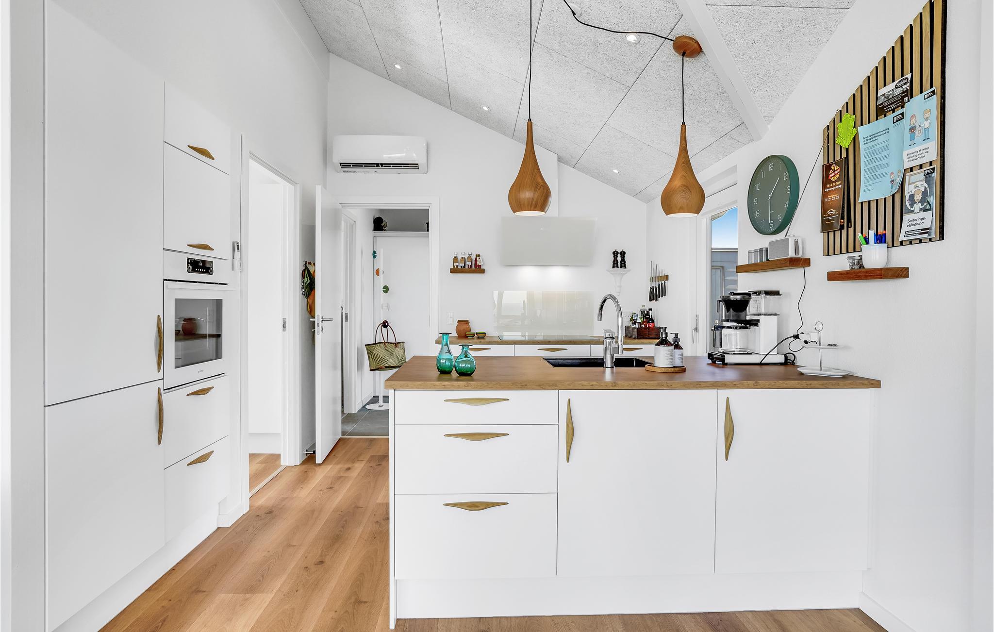 Velkommen til dette flotte hus ved kysten. Her har kun få minutter ned til vandet, som I også kan iagttage fra jeres egen skønne oase. Huset er et særsyn i lækre indretningsløsninger og høj kvalitet hele vejen rundt, så I kan se frem til nogle dage, hvor virkelig kan føle jer forkælet af omgivelserne både indendørs og udenfor. Terrasserne kommer sikkert til at blive jeres foretrukne sted at slappe af i sommermånederne, mens I året rundt kan glæde jer over de skønne rum, hvor naturen og udsigten er integreret i indretningen.