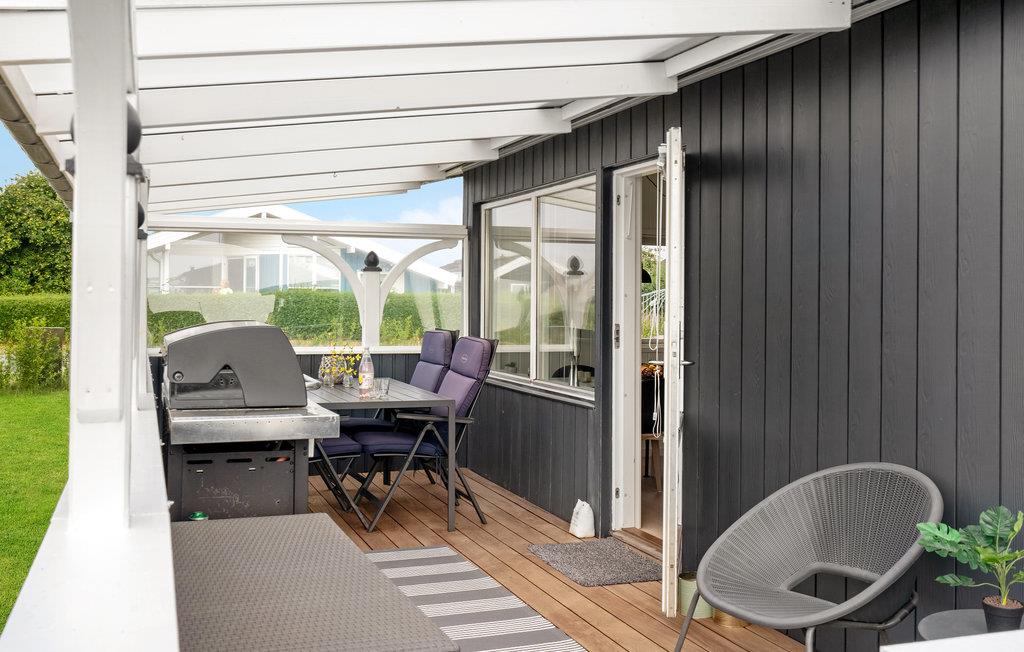Den vind- og vejrbeskyttede terrasse inviterer jer desuden til at tilberede jeres yndlingsretter på gasgrillen. En anden terrasse på den anden side af huset kan også bruges til solbadning.
