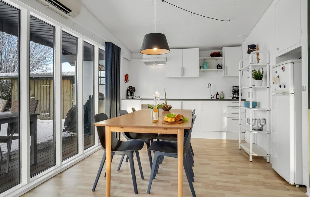 Velkommen til Hejlsminde og dette nydelige hus, der bliver jeres komfortable feriebase. Huset byder på lyse rum med store vinduespartier og behagelige møbler, så I kan slappe godt af og hygge jer. Et højdepunkt er det åbne, veludstyrede køkken, hvor I kan tilberede lækre feriemåltider, og sofahjørnet i stuen med stort fladskærms-TV.