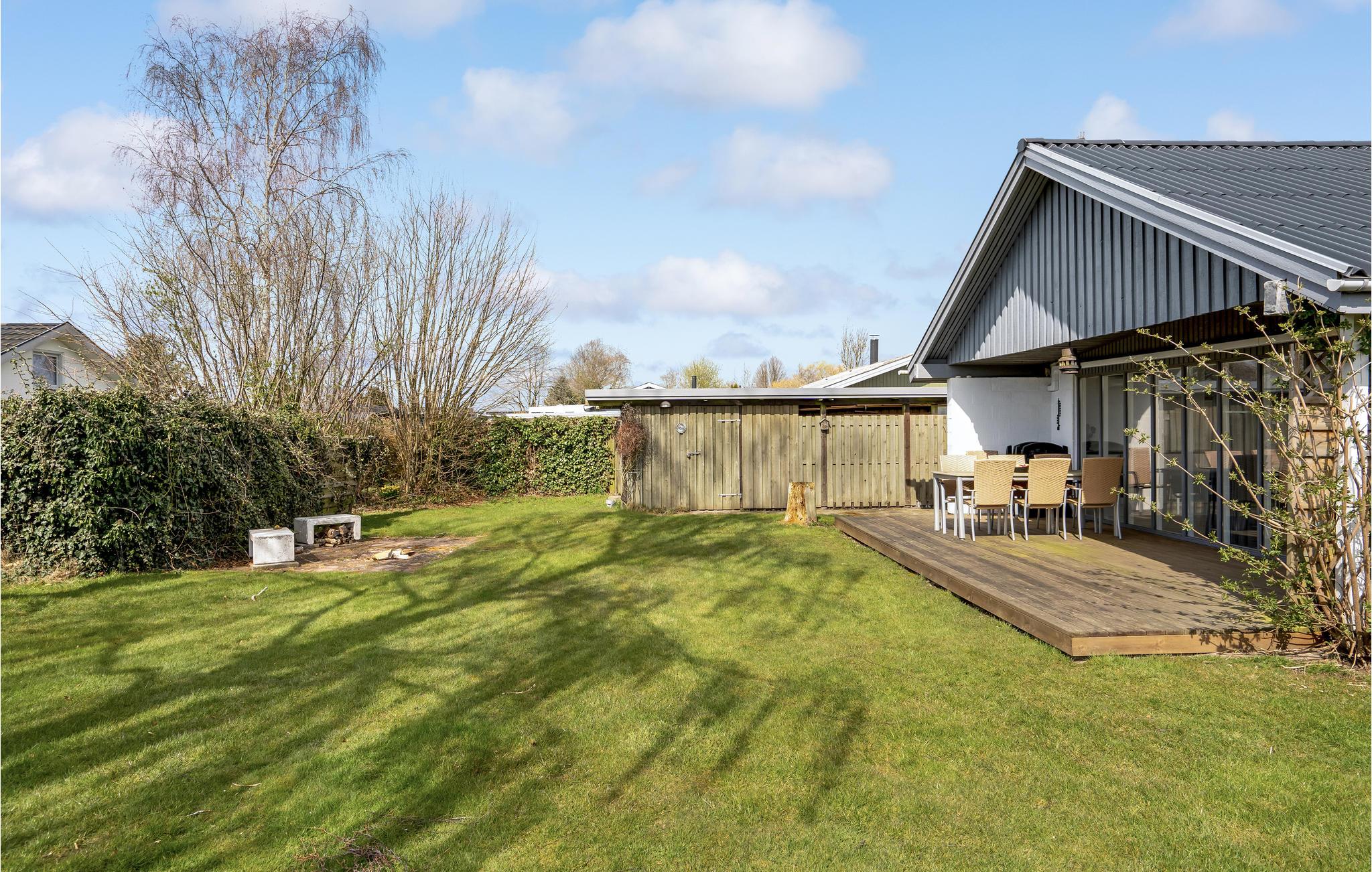 Når vejret er godt, kommer I formentlig til at tilbringe en stor del af jeres ferie udenfor. Her finder I en rummelig træterrasse med spiseplads, hvor I kan nyde morgenmaden, sole jer gennem dagen og holde hyggelige grillaftener. Den store have er afskærmet af hæk og byder på masser af plads til leg, boldspil og udendørsspil såsom kubb/vikingespil. Har I en eller to hunde, er de også meget velkomne her, og vil elske at boltre sig på græsplænen. Der er også en hyggelig, lille bålplads, hvis I skulle have lyst til at bage snogbrød eller lave ristede skumfiduser.