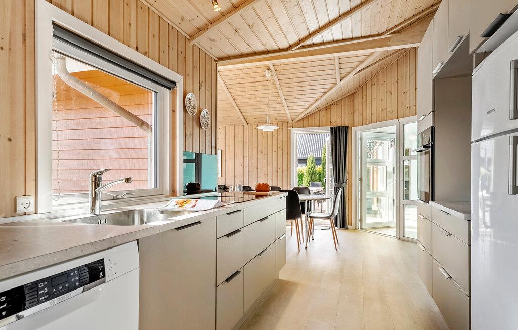 Tilbring afslappende dage i dette førsteklasses feriehus ikke langt fra Lillebælt. De smukke møbler og den behagelige træatmosfære skaber de bedste betingelser for et afslappende ophold med hele familien. Det åbne opholdsområde kombinerer køkken, spiseplads og siddeområde til en hyggelig helhed. Store vinduer strømmer lys ind i rummet og giver en bred udsigt over terrassen og den velholdte have. Et særligt højdepunkt indendørs er poolen, som tilbyder badesjov med udsigt over de grønne områder uanset vejret. Spabadet og saunaen indbyder også til afslapning.