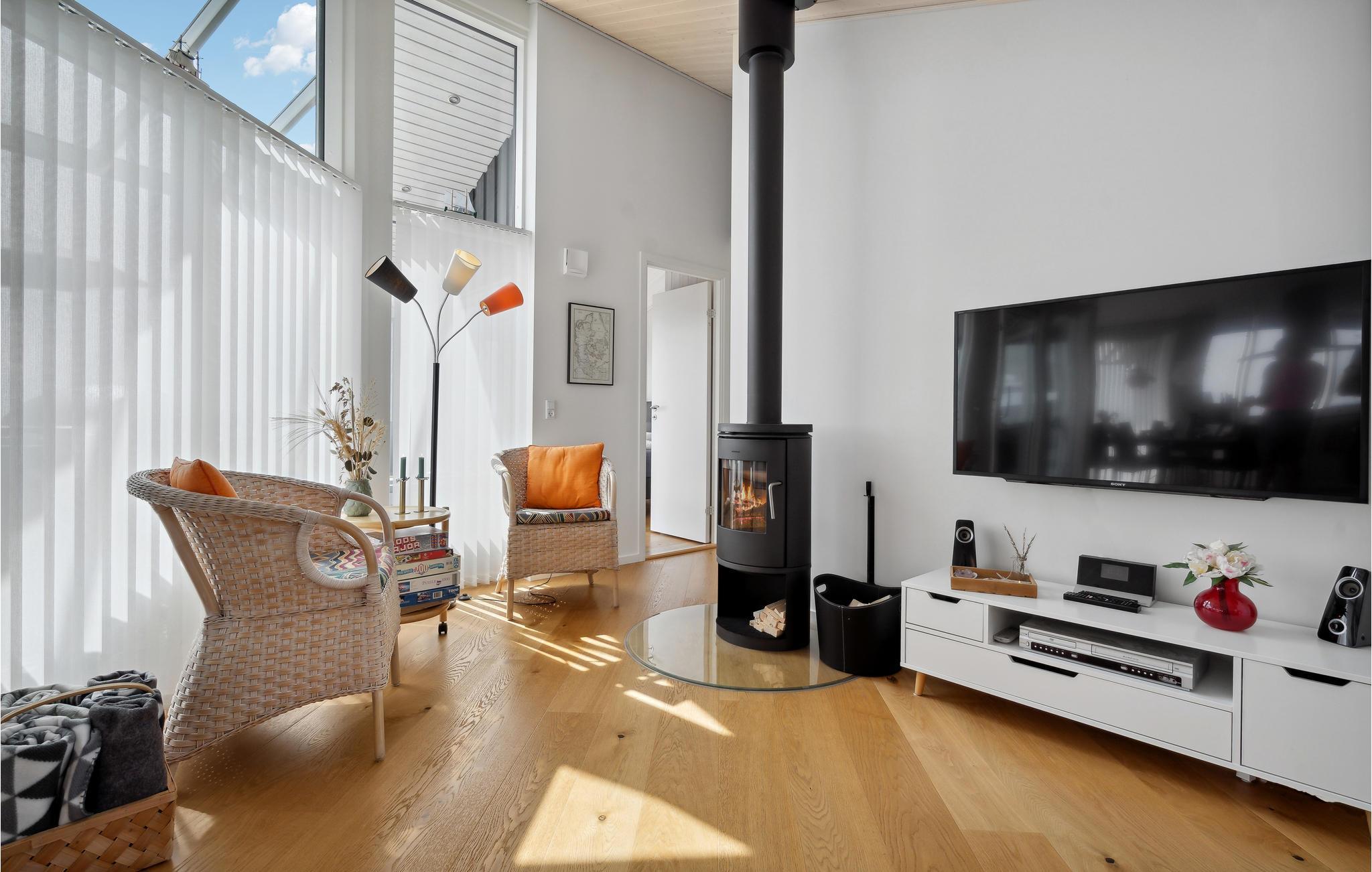 Huset har en fantastisk beliggenhed ved havet og giver jer optimale rammer for en afslappende ferie med mange dage på stranden. Stilen er moderne og kvalitetsbevidst med dejligt store lysindfald og den fremragende udsigt, som kan ses fra flere rum. Tilbered lækre feriemåltider, nyd måltiderne sammen i fred og ro og sæt dig godt til rette i sofaen, mens ilden knitrer hyggeligt i brændeovnen.