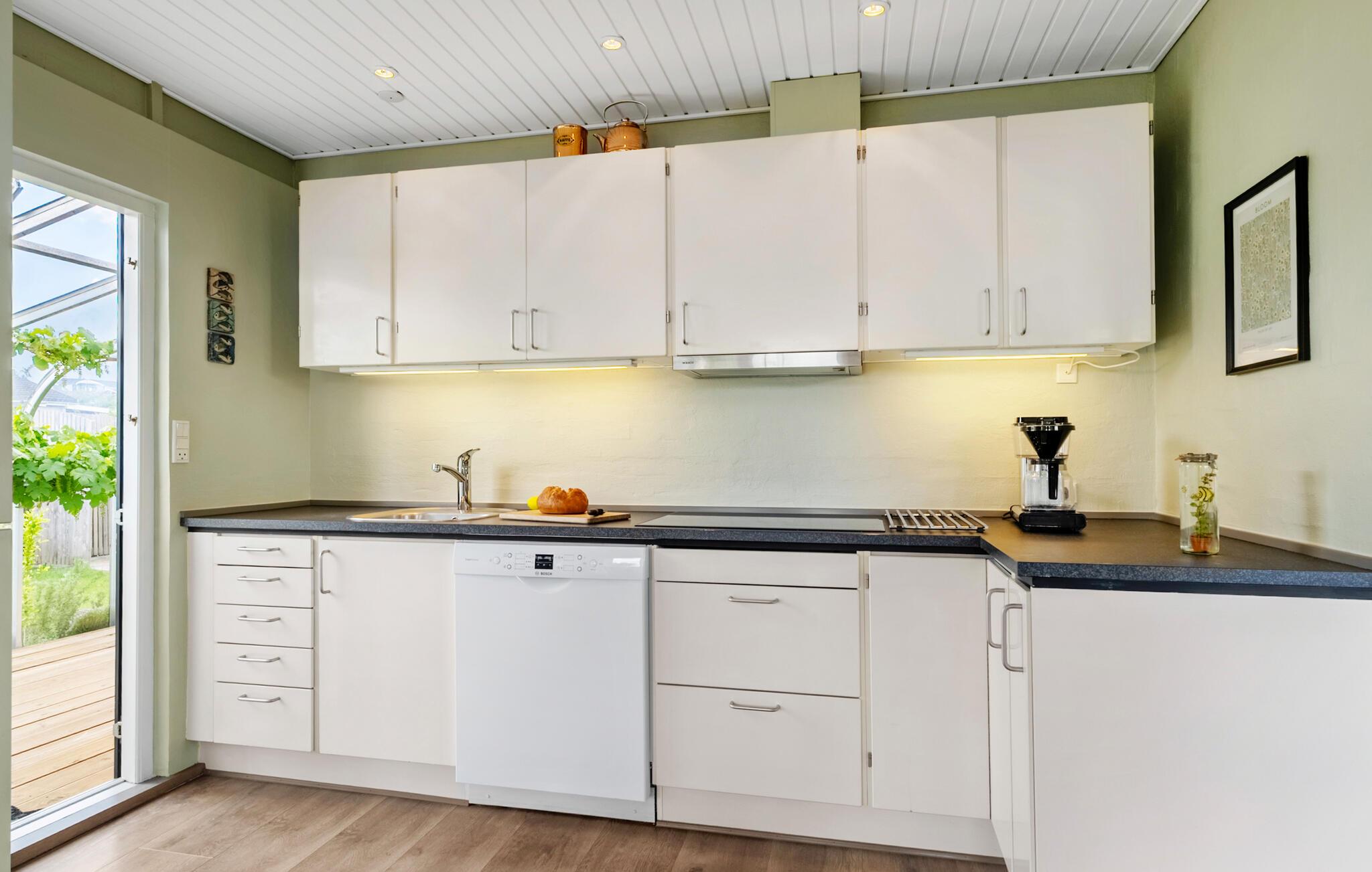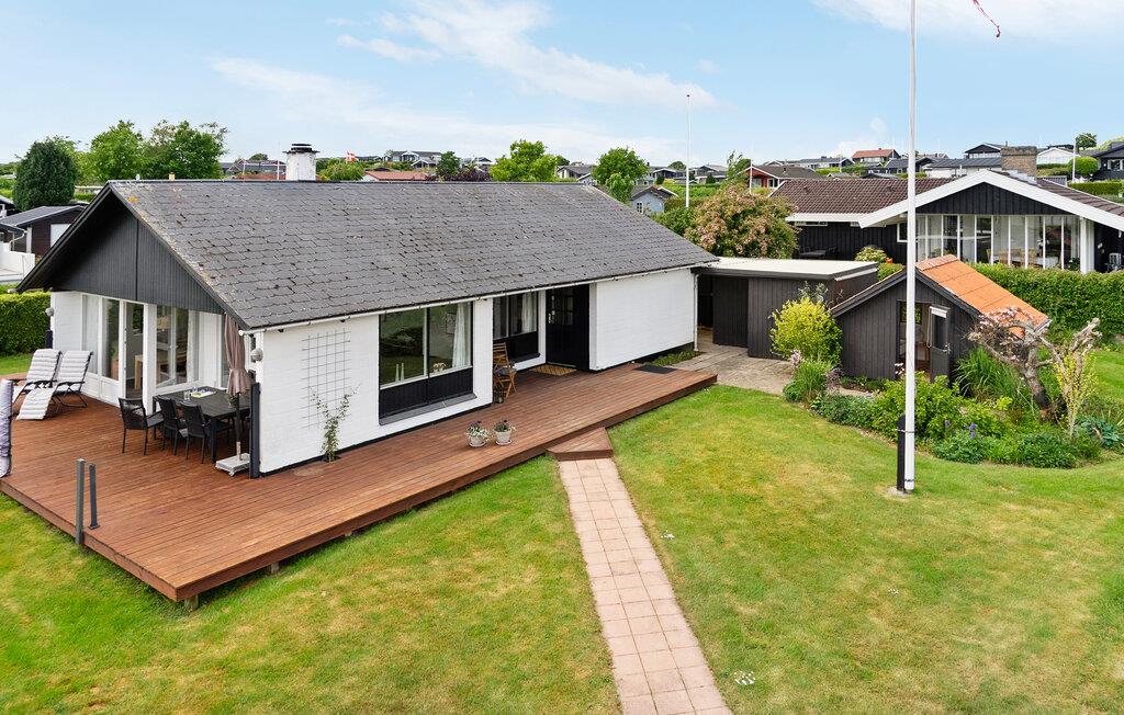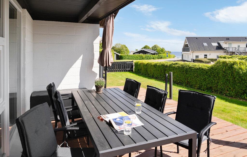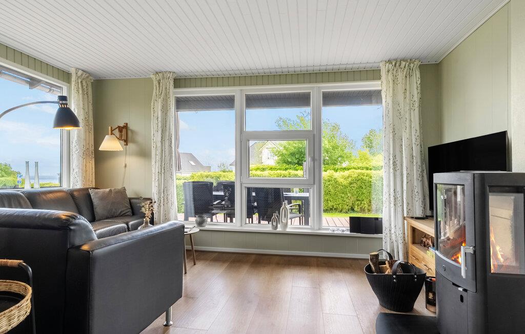 Nyd jeres næste ferie i dette hyggelige feriehus, nogle få skridt fra vandet. De rolige omgivelser og den gennemtænkte indretning tilbyder ideelle betingelser for en afslappende familieferie. Find jer godt til rette i den lyse opholdsstue med brændeovn og store vinduer. Lad blikket vandre ud i haven og nyd det behagelige lys. I det praktisk indrettede køkken med spiseplads er madlavningen lige så ubesværet som den efterfølgende sociale sammenkomst ved bordet. Et ekstra område med lænestole skaber et dejligt tilflugtssted til at læse eller nyde kaffe.