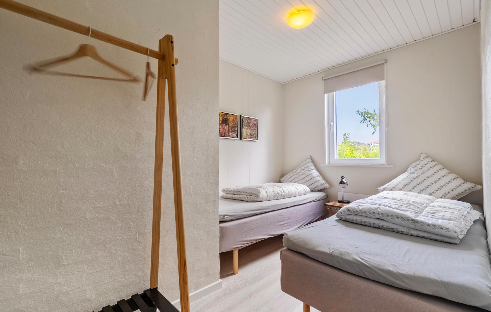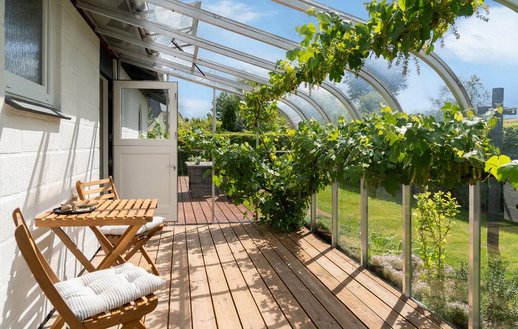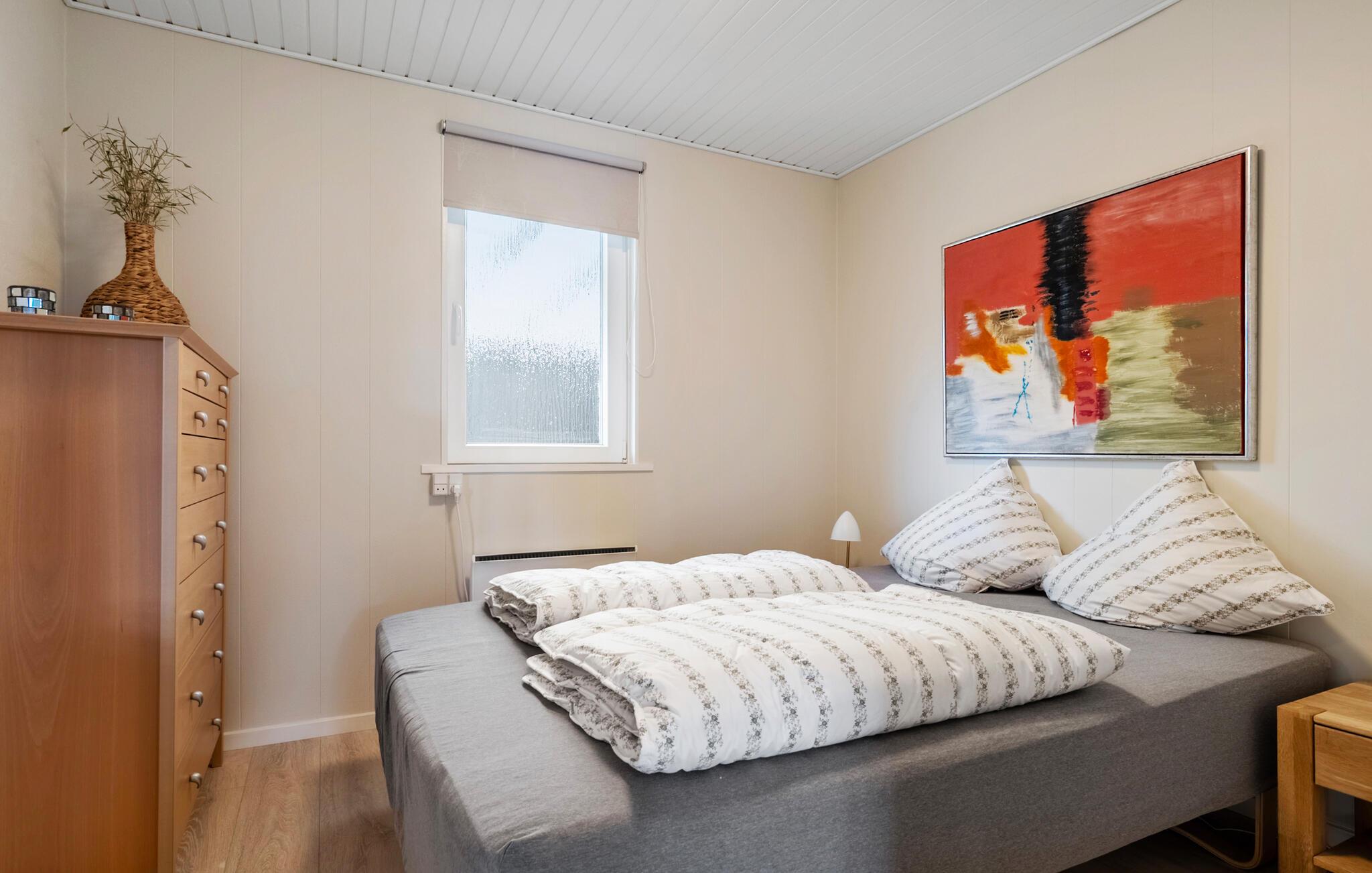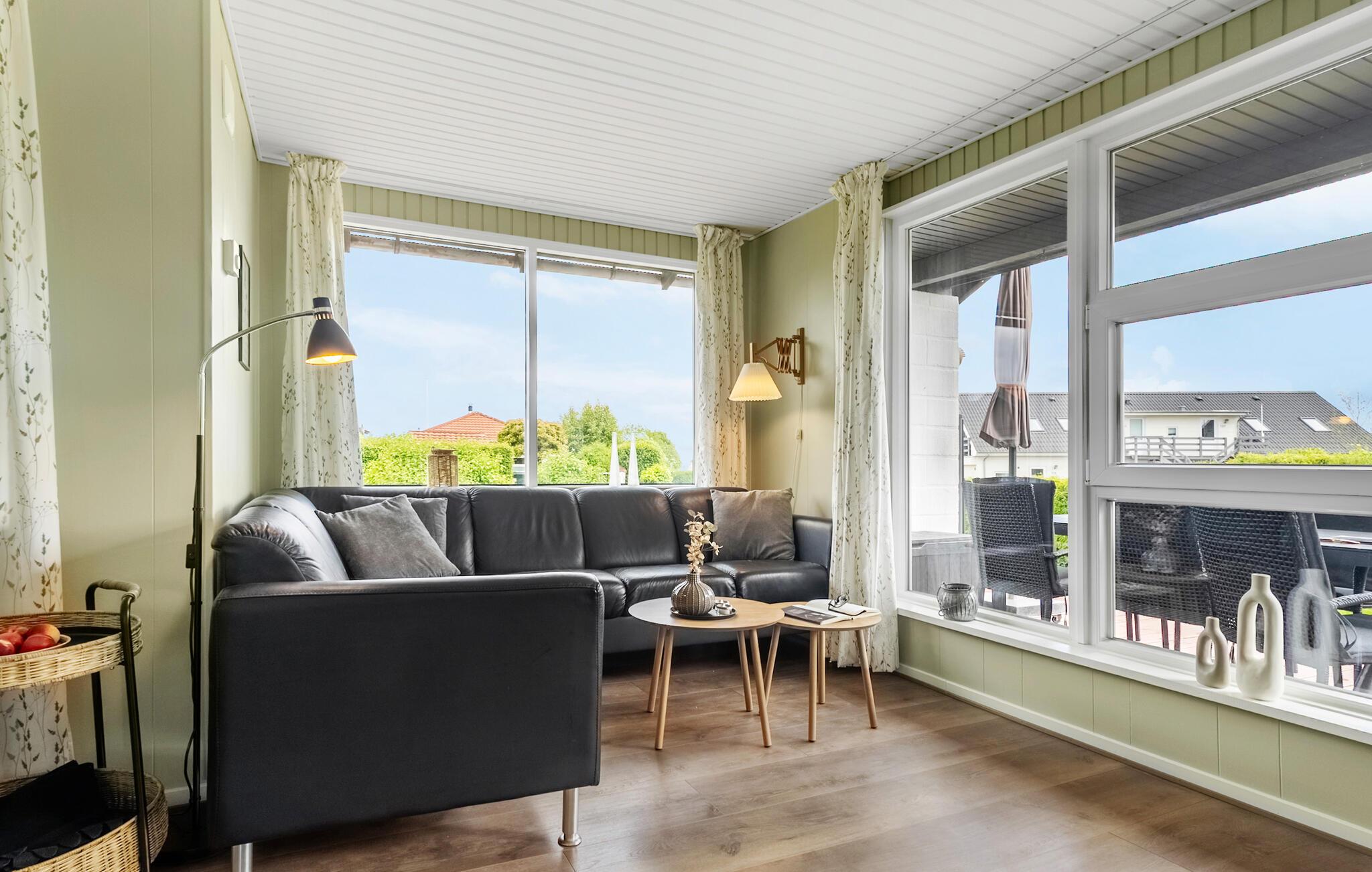 Nyd jeres næste ferie i dette hyggelige feriehus, nogle få skridt fra vandet. De rolige omgivelser og den gennemtænkte indretning tilbyder ideelle betingelser for en afslappende familieferie. Find jer godt til rette i den lyse opholdsstue med brændeovn og store vinduer. Lad blikket vandre ud i haven og nyd det behagelige lys. I det praktisk indrettede køkken med spiseplads er madlavningen lige så ubesværet som den efterfølgende sociale sammenkomst ved bordet. Et ekstra område med lænestole skaber et dejligt tilflugtssted til at læse eller nyde kaffe.