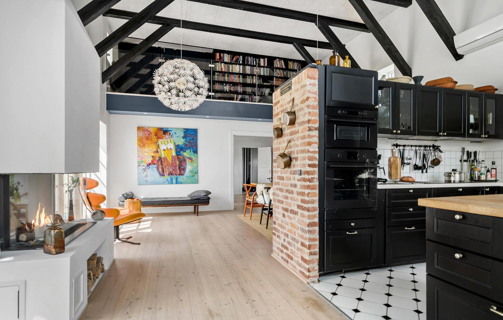 Velkommen til dette fantastiske hus, hvor I får godt med plads og masser af komfort til årets ferie med familien. I bor lige ned til søen Hejls Nor, og udsigten er alle lunde fremragende. Indvendigt emmer det af kvalitet og komfort over hele linjen. Huset er virkelig flot indrettet med højt til loftet, varme træbjælker og delvist rå murstensvægge, der giver det indre et flot, rustikt udtryk. I kombination med de moderne bekvemmeligheder og rene linjer skabes her en helhedsoplevelse, der gør det nemt at slappe af og bare nyde. Køkkenet er stort og veludstyret, så gør endelig madlavningen til et fornøjeligt fællesprojekt, inden der dækkes op til aftensmaden ved spisebordet af træ. Rund aftenen af i udestuen i de behagelige sofaer, hiv brætspillene frem og nyd udsigten, inden I går til køjs.
