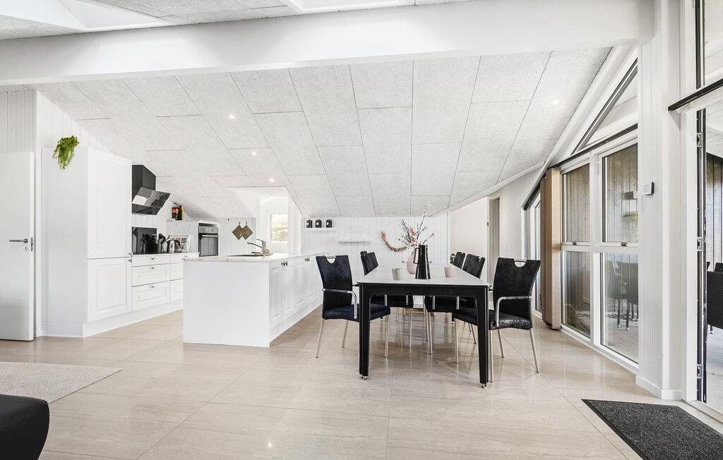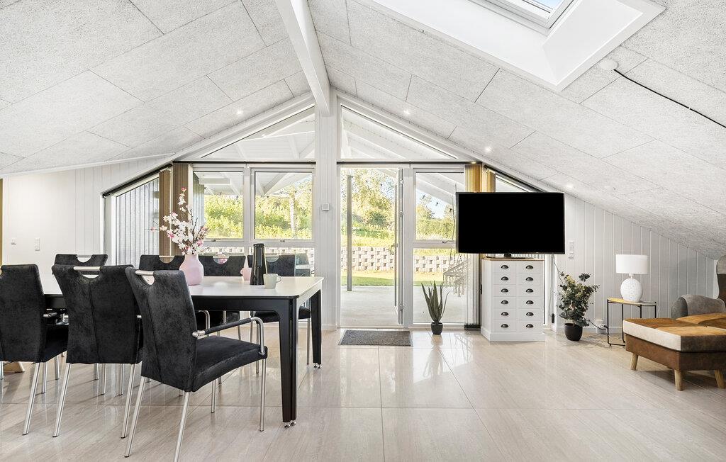 Jeres stilfulde feriehus, med plads til to familier, ligger tæt ved kysten af Lillebælt i Hejlsminde og kombinerer rolige omgivelser med mange fritidsmuligheder. Her finder I ideelle rammer for en afslappende ferie i Danmark. Indenfor venter jer en åben og lys stue med et smukt, åbent køkken, et elegant spisebord og behagelige siddepladser. Den gennemtænkte indretning skaber en behagelig og indbydende atmosfære. Takket være de store vinduespartier kan I nyde udsigten til haven, både når I slapper af i sofaen og ved fælles måltider.