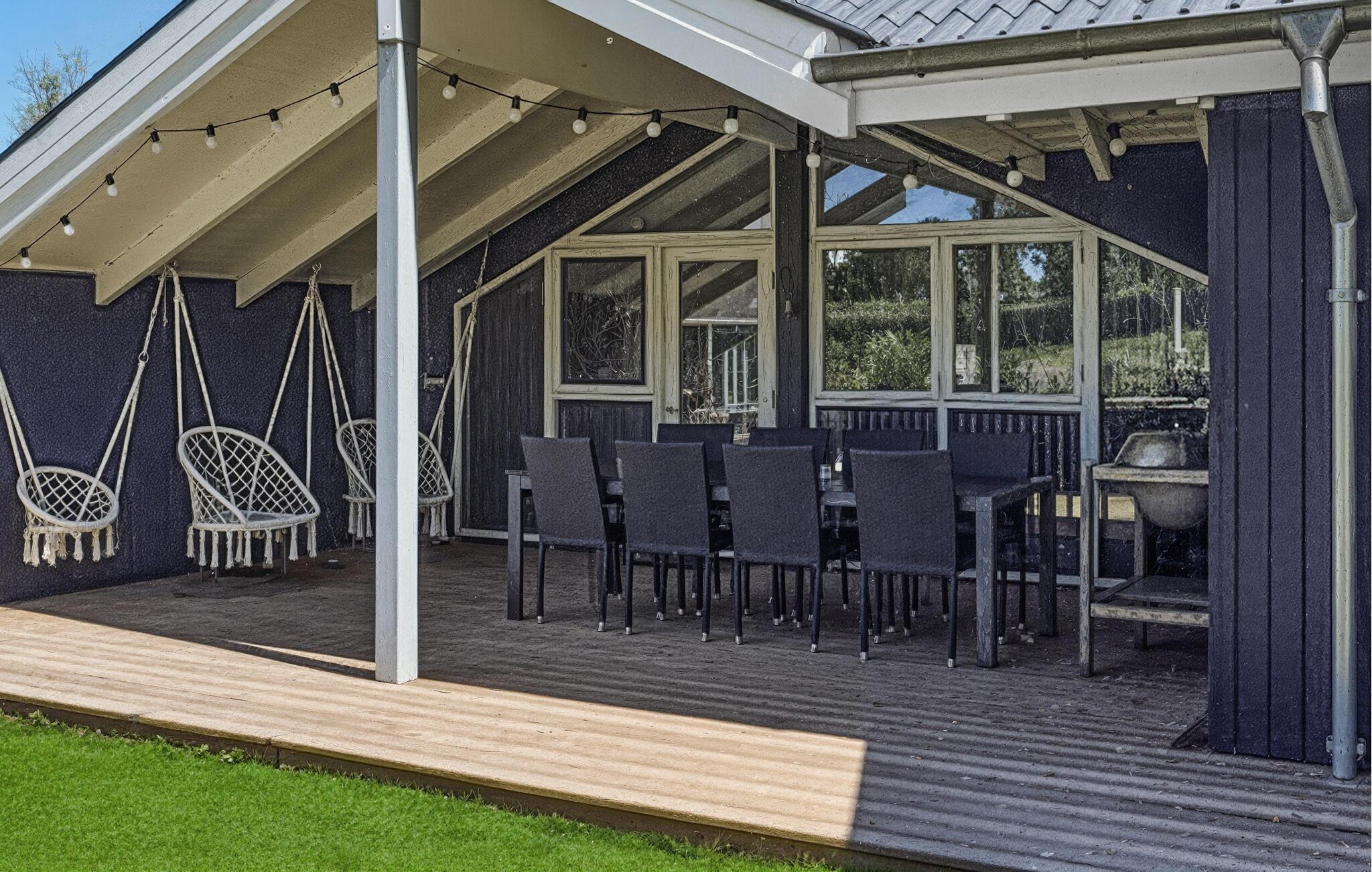 Afslapning er også i højsædet på terrassen. Sæt jer ved det rummelige terrassebord, eller lad sjælen finde ro i hængestolene. Udnyt feriehusets fremragende beliggenhed til en daglig dukkert i havet, eller tag på cykelture gennem det smukke syddanske landskab. Omgivelserne byder på mange naturoplevelser og inviterer jer til at opleve regionens skønhed på nært hold.