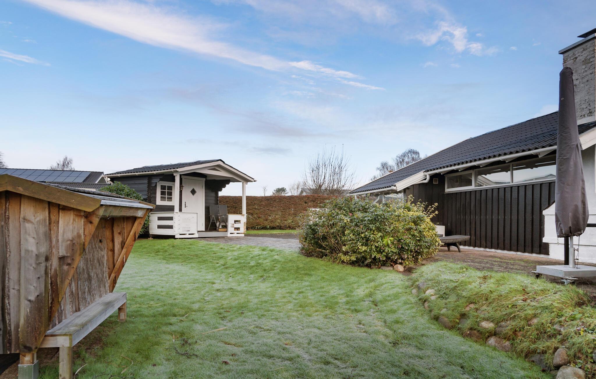 Hyggeligt feriehus i Hejlsminde med udestue, have, sauna og nærhed til vand og natur.
