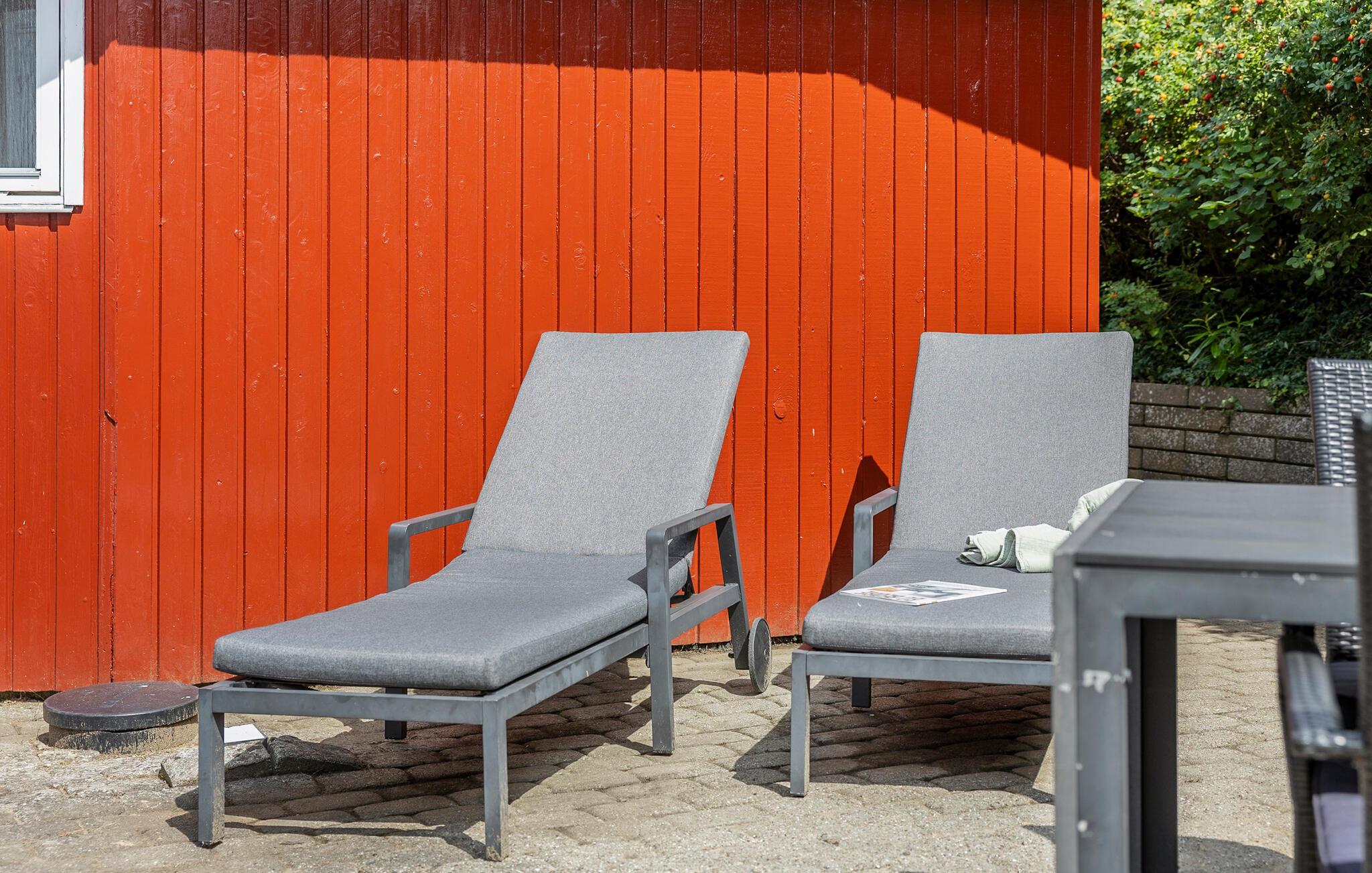 På solrige dage inviterer terrassen jer til at nyde morgenmaden udendørs. Lad blikket vandre over havet, tænd grillen efter en svømmetur eller snak omkring bålstedet med et glas vin.