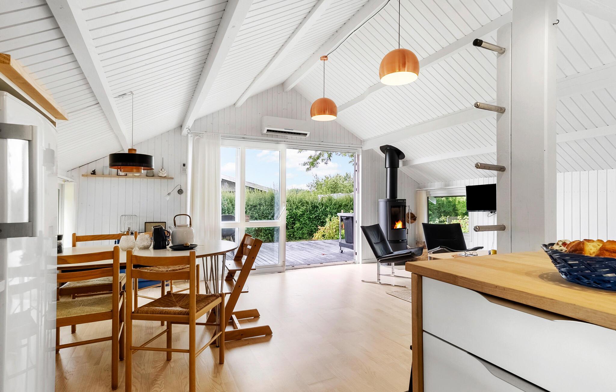 Der venter jer ren ferieafslapning i dette komfortable hus, som er godt placeret i gåafstand fra stranden. Find jer godt til rette i de lyse, stilfulde og moderne værelser. Den behagelige sofa lægger op til hyggelige aftener ved den knitrende brændeovn, måske med en god film som underholdning.