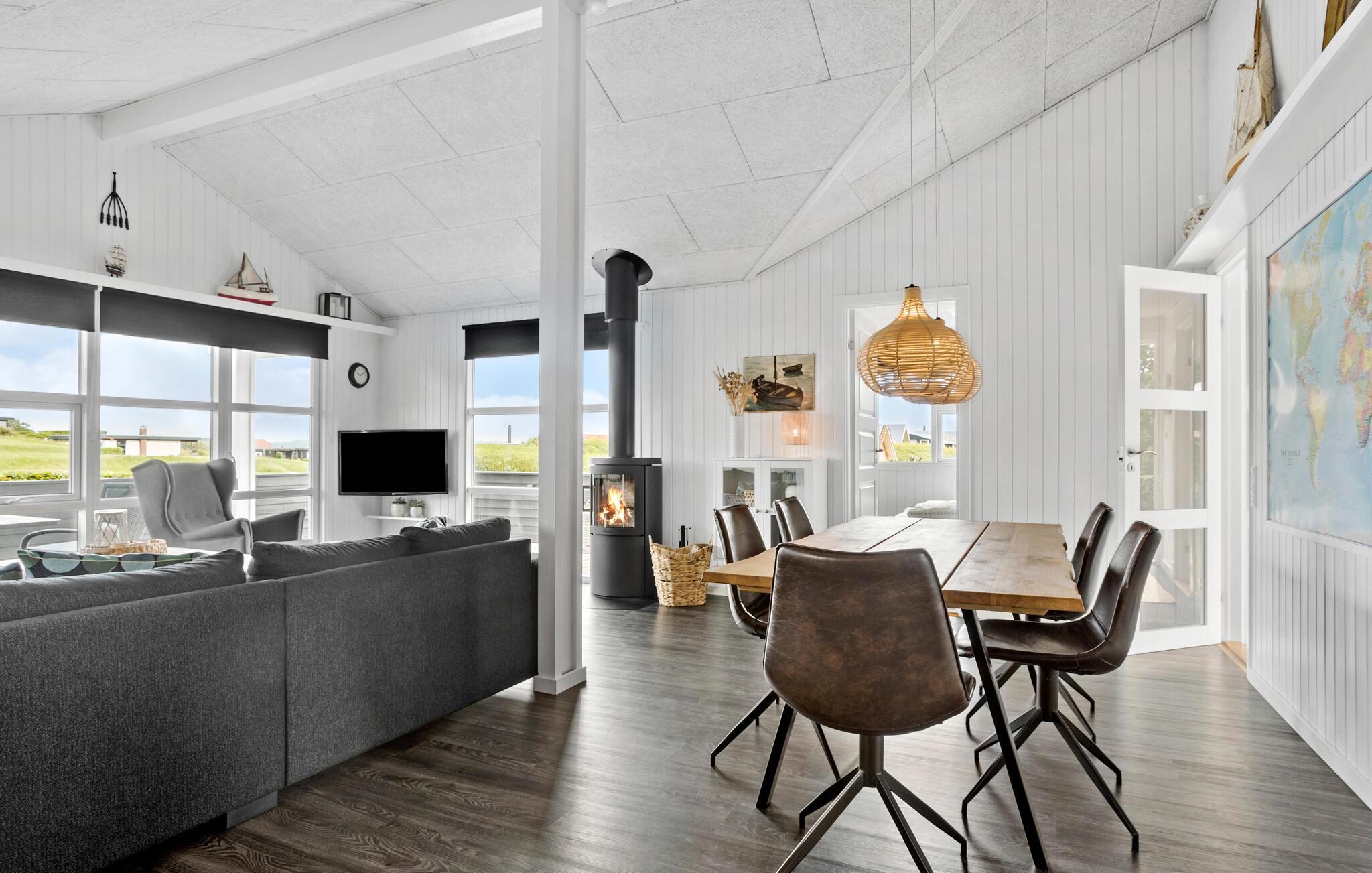 Tilbring en uforglemmelig tid i dette komfortable og indbydende hus, som byder på en fantastisk panoramabeliggenhed. Slap af i de stilfulde omgivelser, hyg jer sammen i den rummelige hjørnesofa efter en spændende dag med udflugter og opdagelser i området, og se ud over havet, mens I lytter til flammernes knitren i brændeovnen.