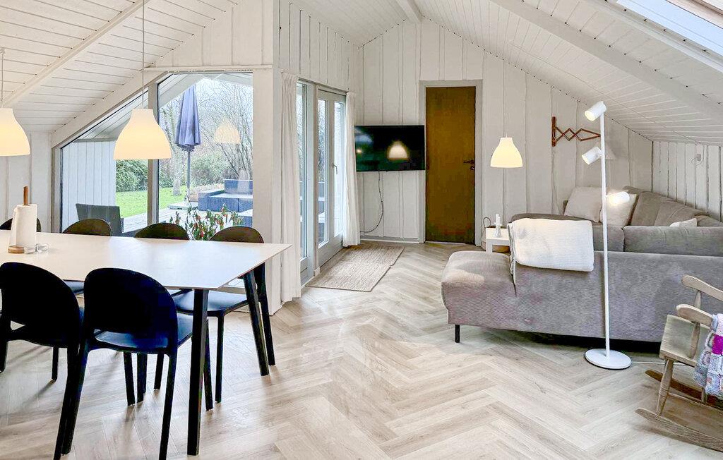 I dette hyggelige hus med sine varme trævægge vil I føle jer hjemme fra første øjeblik. De store vinduer og ovenlysvinduer lukker masser af lys ind og skaber en venlig og indbydende atmosfære, ideel til afslapning. Nyd lange morgenmader eller hyggelige aftener ved spisebordet, mens en behagelig sofa venter på jer i opholdsstuen. Og når det bliver køligere udenfor, sørger brændeovnen for hyggelig varme.