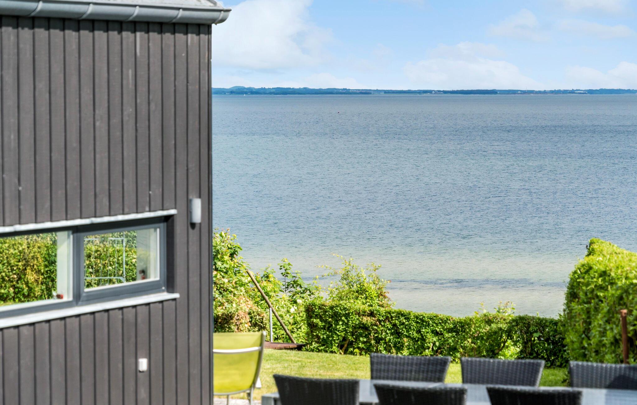Nyd en skøn ferie med panoramaudsigt over Lillebælt i dette moderne sommerhus ved stranden.