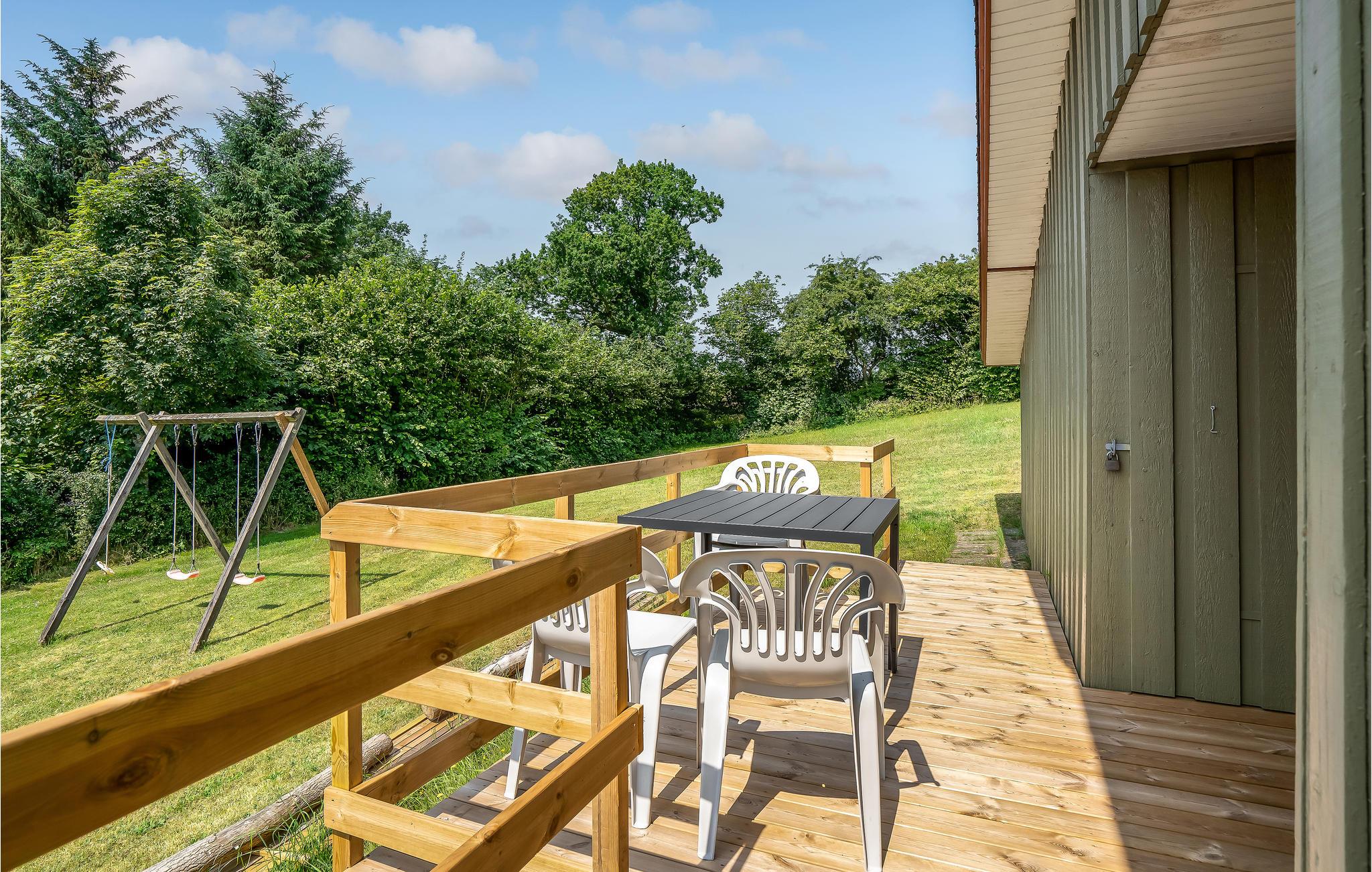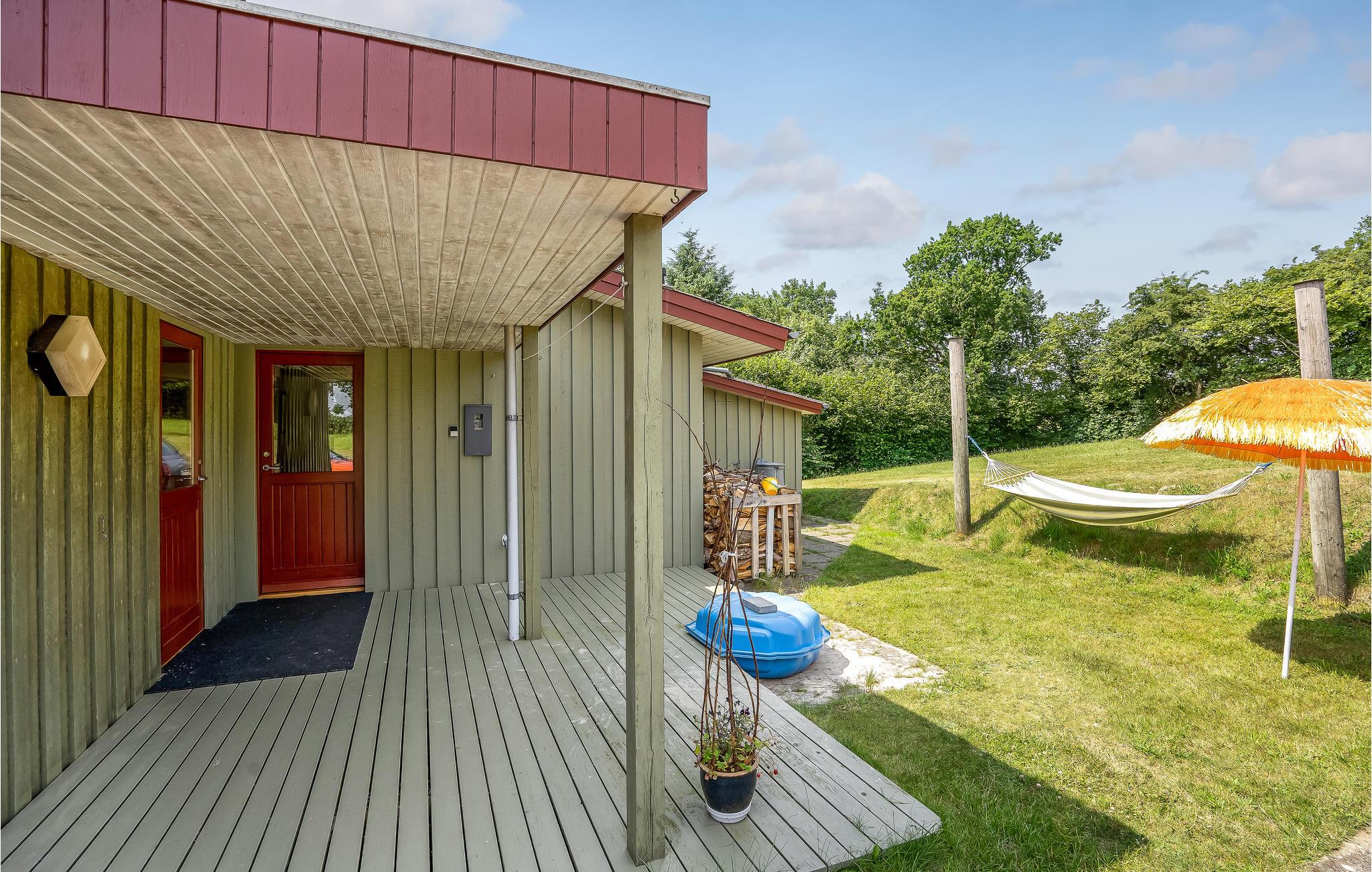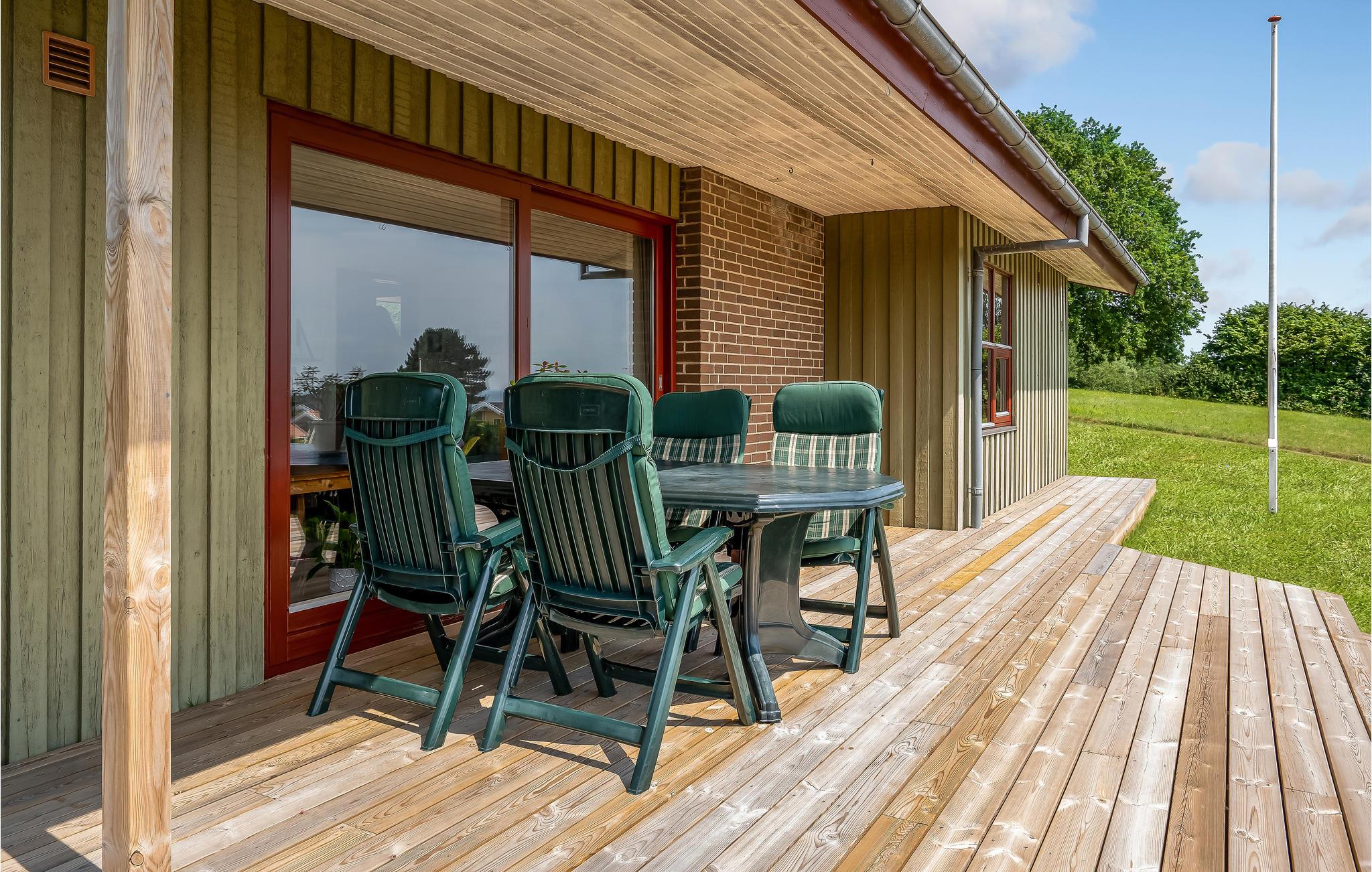 Feriehus med en høj beliggenhed og udsigt. Huset ligger på en stor grund med masser af plads til udfoldelse. Der er terrasse på begge sider af huset, en overdækket og en åben, så I kan nyde det skønne vejr. Terrasserne giver flere muligheder for at nyde udelivet med sol eller skygge, alt efter hvad I er til. Indendøre er huset indrettet med stue, spisestue og køkken i åben forbindelse. Der er 3 soveværelser og badeværelse med bruser.