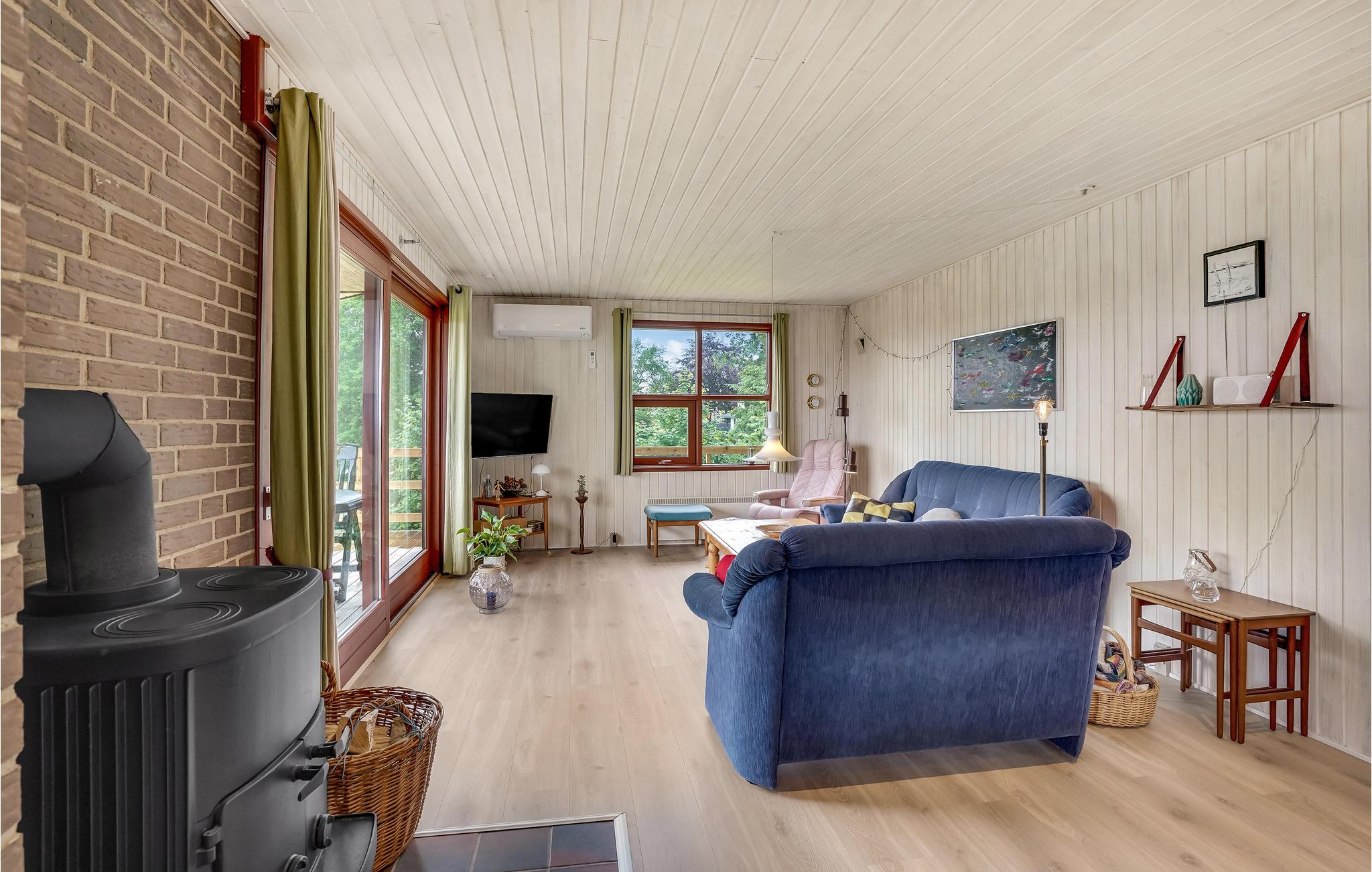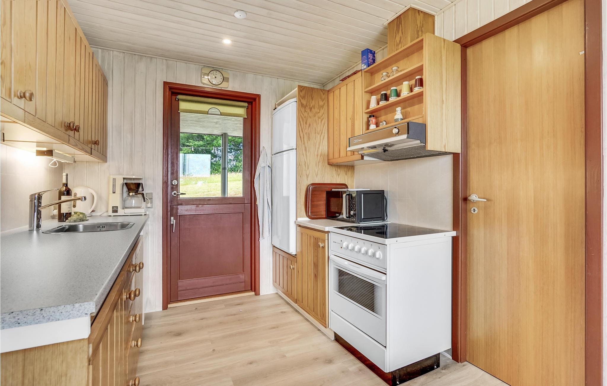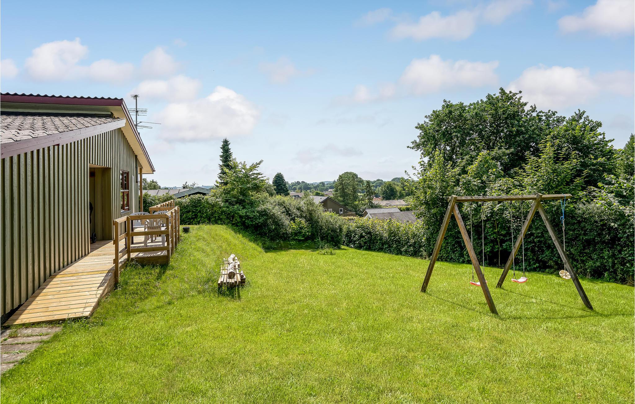 Feriehus med en høj beliggenhed og udsigt. Huset ligger på en stor grund med masser af plads til udfoldelse. Der er terrasse på begge sider af huset, en overdækket og en åben, så I kan nyde det skønne vejr. Terrasserne giver flere muligheder for at nyde udelivet med sol eller skygge, alt efter hvad I er til. Indendøre er huset indrettet med stue, spisestue og køkken i åben forbindelse. Der er 3 soveværelser og badeværelse med bruser.
