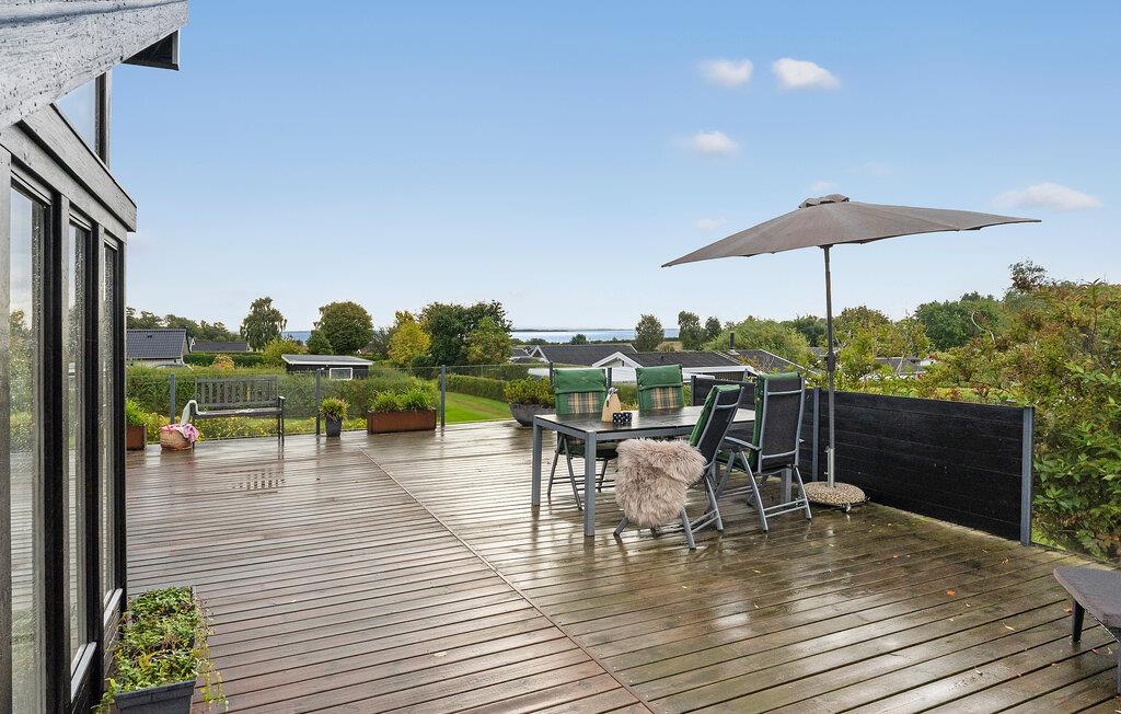 Stilfuldt feriehus med stor terrasse og delvis havudsigt i naturskønne Hejlsminde.