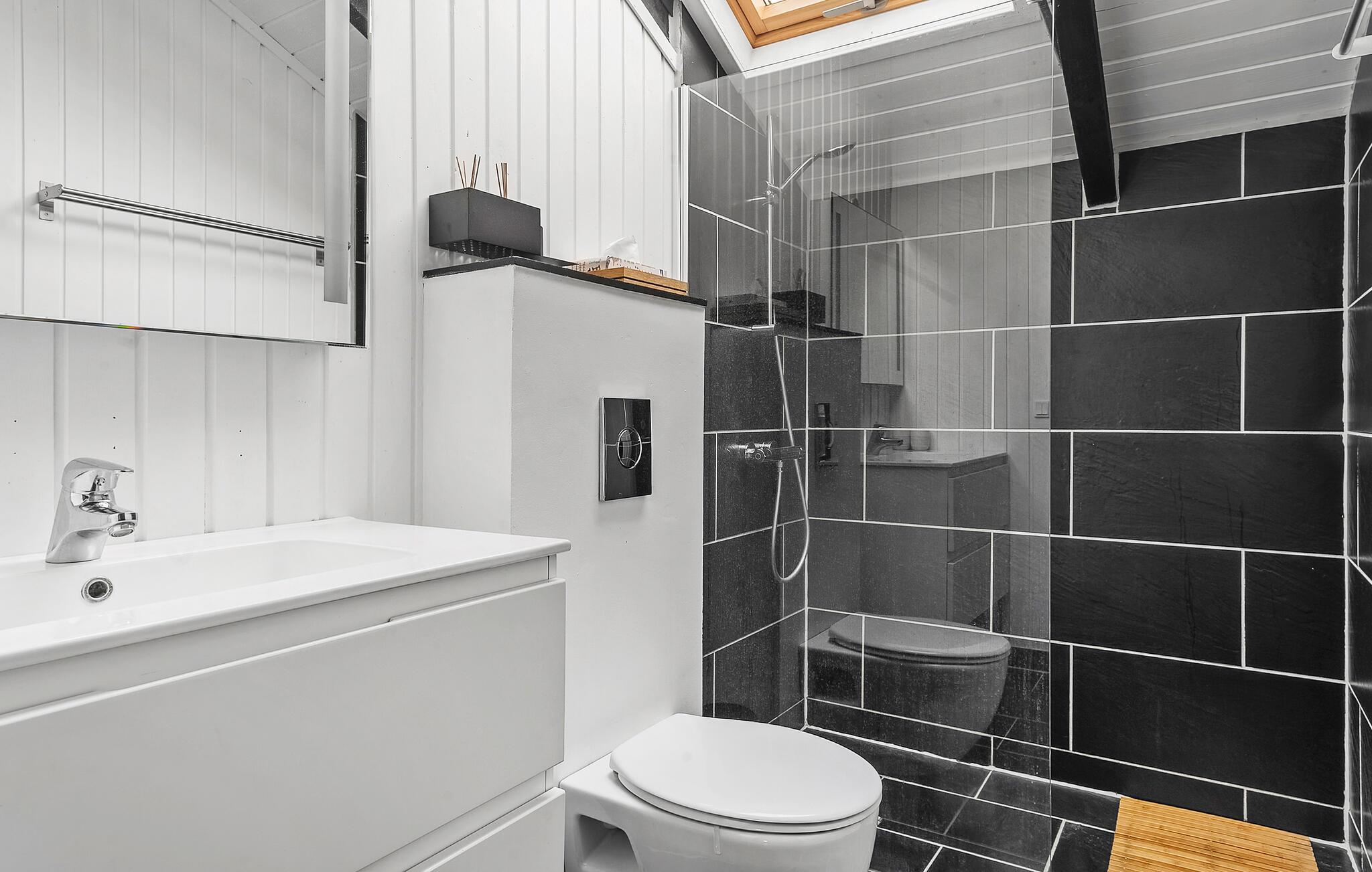 Badeværelse (nr. 1) - WC. Varmt og koldt vand. Bruser