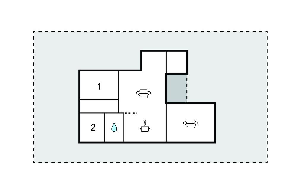 Glæd jer til en vellykket kombination af hyggelige indretningsløsninger og lyse rum i dette feriehus, der gør jeres ophold særligt behageligt. Den smukke opholdsstue byder jer velkommen med højt til loftet, store vinduer og komfortable sofaer. Slap af, mens I kigger gennem ovenlysvinduerne eller nyd filmaftener sammen. Brug det praktiske køkken til at tilberede lækre retter. Bagefter kan I spise i den lyse spisestue, som byder på masser af lys og smuk udsigt over området takket være store glaspartier.